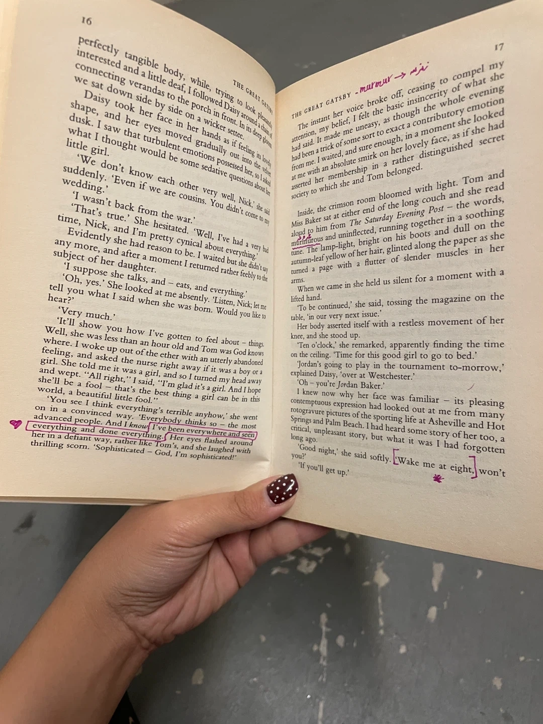 Selling a copy of The Great Gatsby by F. Scott Fitzgerald. It's a Vintage Fitzgerald edition. Perfect for anyone who loves classic literature or is looking for a good read. Some lines highlighted inside