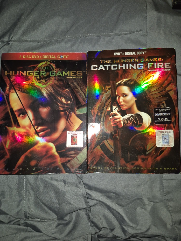 Selling The Hunger Games and Catching Fire DVDs. Both are 2-disc DVDs with a digital copy. Great for any fan of the series!