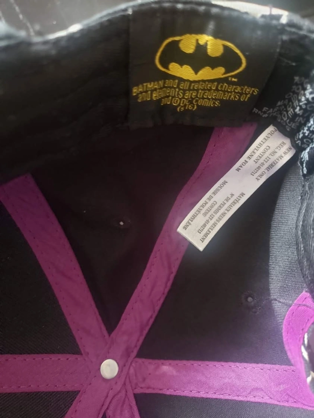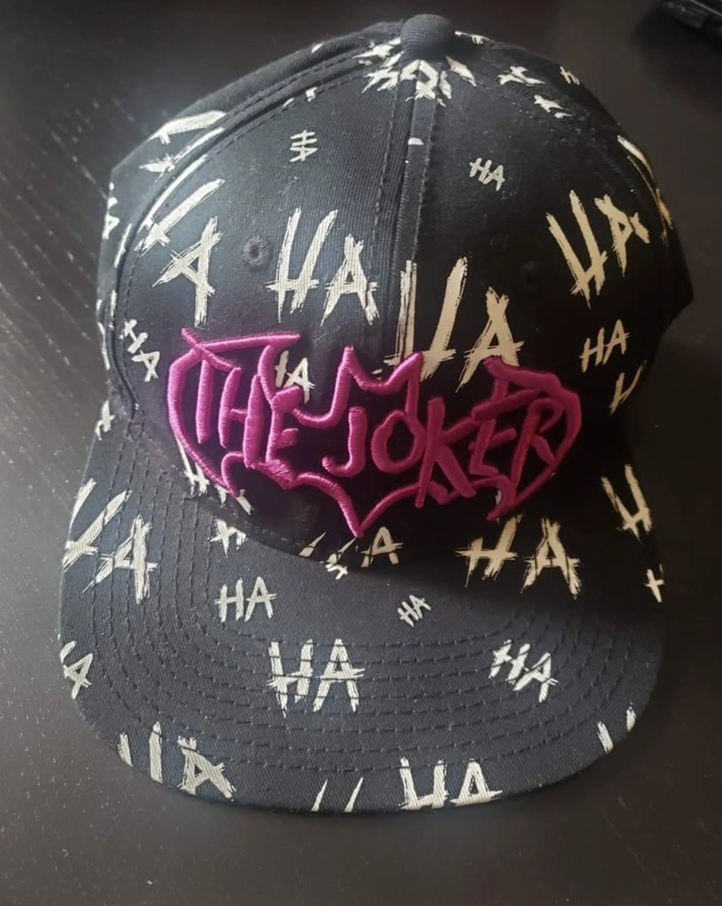 Black baseball cap. Features a purple "The Joker" logo Adjustable back strap. DC Comics licensed. $10