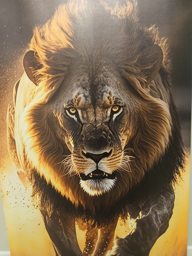 A large majestic lion canvas. Would make an excellent addition for any home, office or studio.