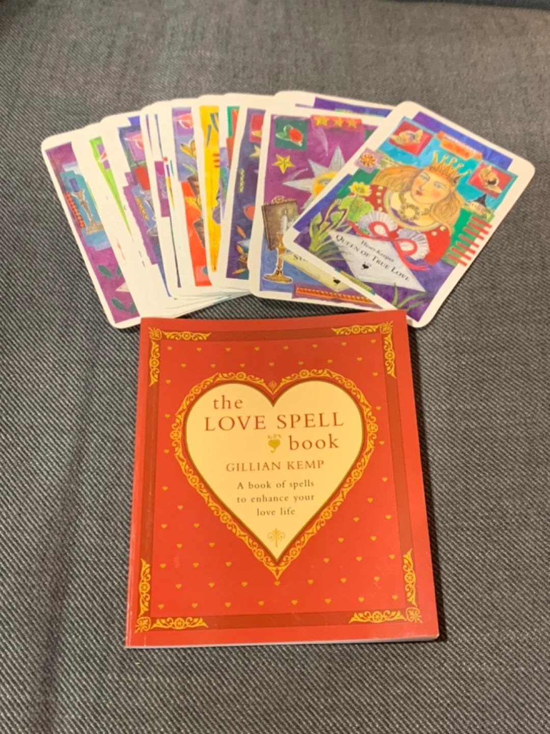 Selling The Love Spell Book and accompanying cards by Gillian Kemp. This set includes a book of spells to enhance your love life and a deck of cards with love predictions and accompanying spells. Get ready to discover how to weave love magic! Can’t find the box unfortunately but will keep looking for it! Found in one of my storage trunks.