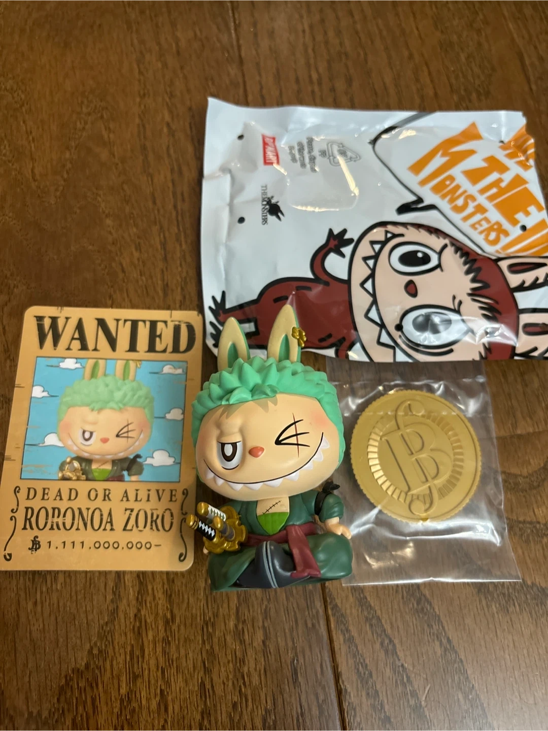Selling THE MONSTERS x One Piece Series figure by Pop Mart. Comes with all the accessories and the original box! Authentic, brand new in its original sealed box. Confirmed Zoro.