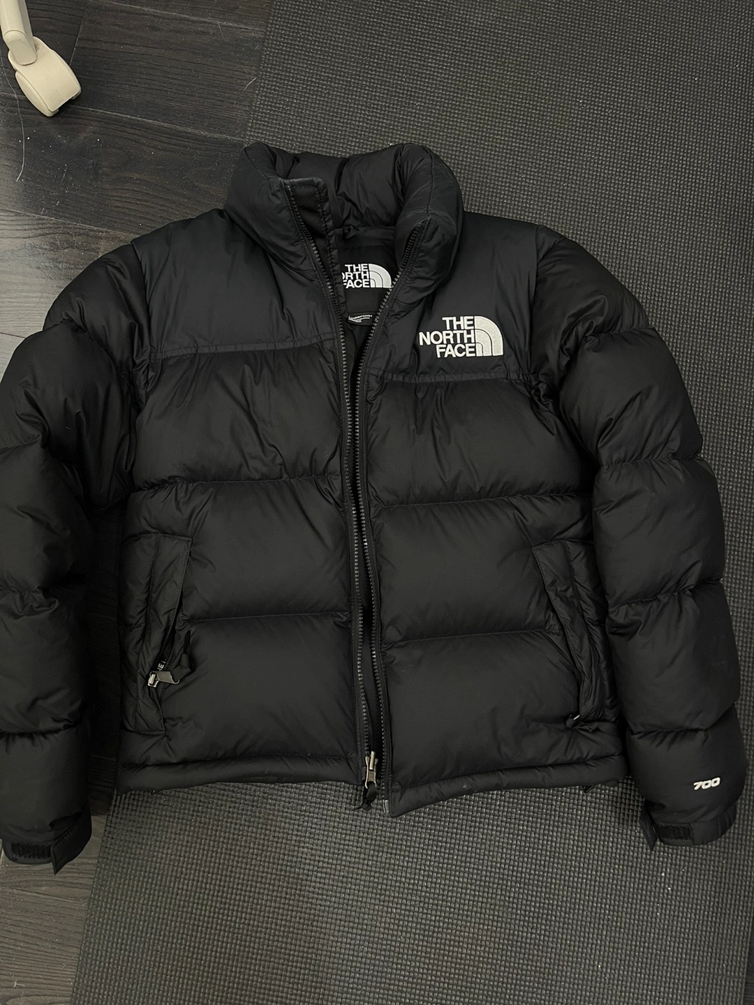 Black puffer jacket. Zip-up front. Multiple pockets. 700 fill power. Good condition. Got it last month