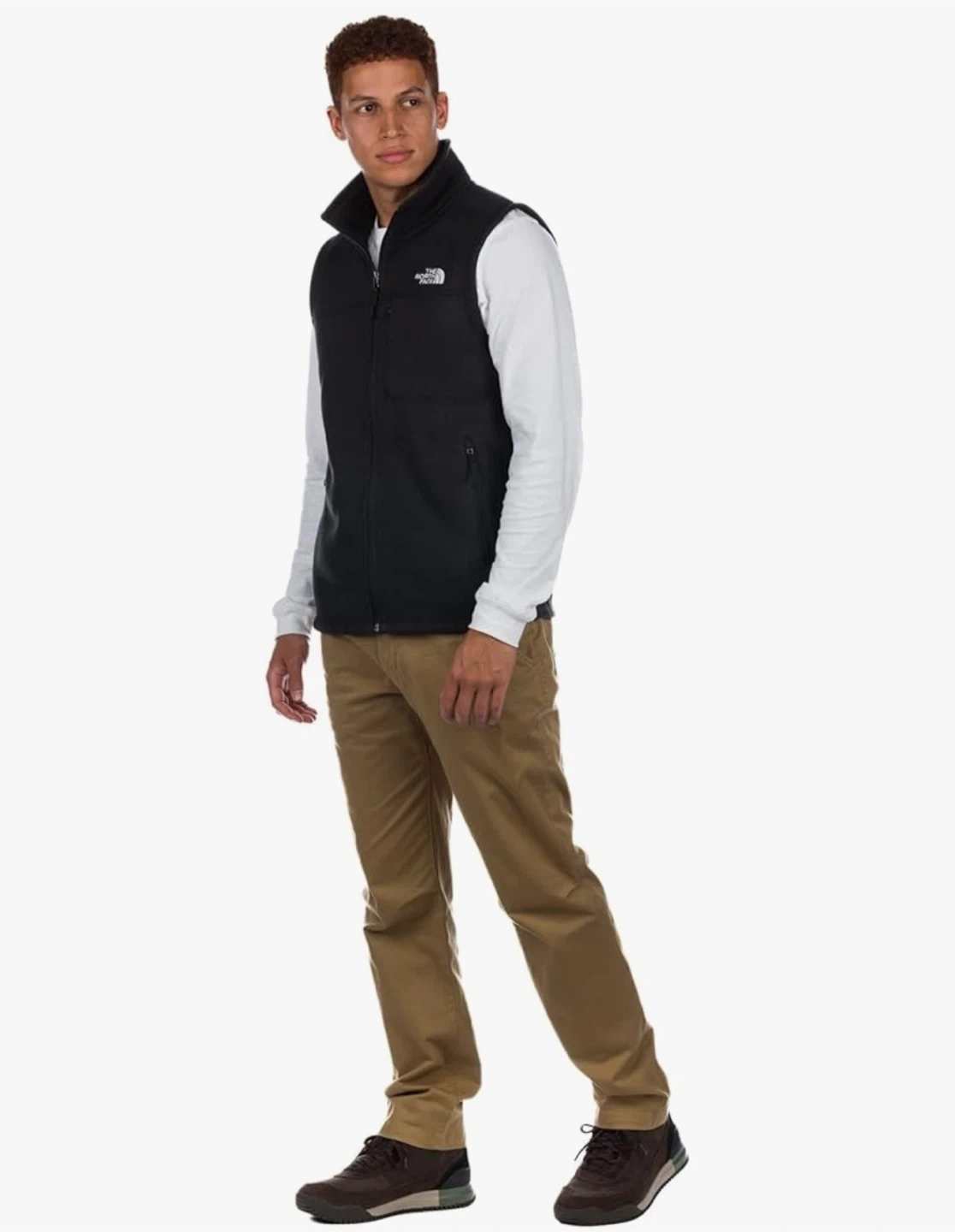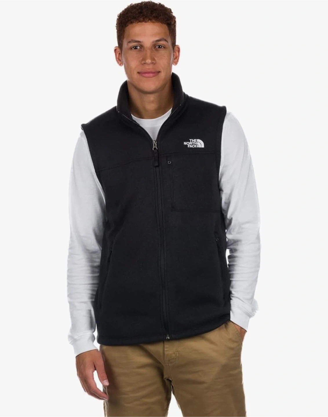 This is a gently used charcoal grey fleece vest from The North Face. It's perfect for layering on those chilly days. The vest is in great condition and has a full zip front. It's a versatile piece that can be dressed up or down, making it a great addition to any wardrobe. STANDARD FIT. This vest features a flattering standard fit with room in the shoulders and chest for ease of movement and space for mid-layers.