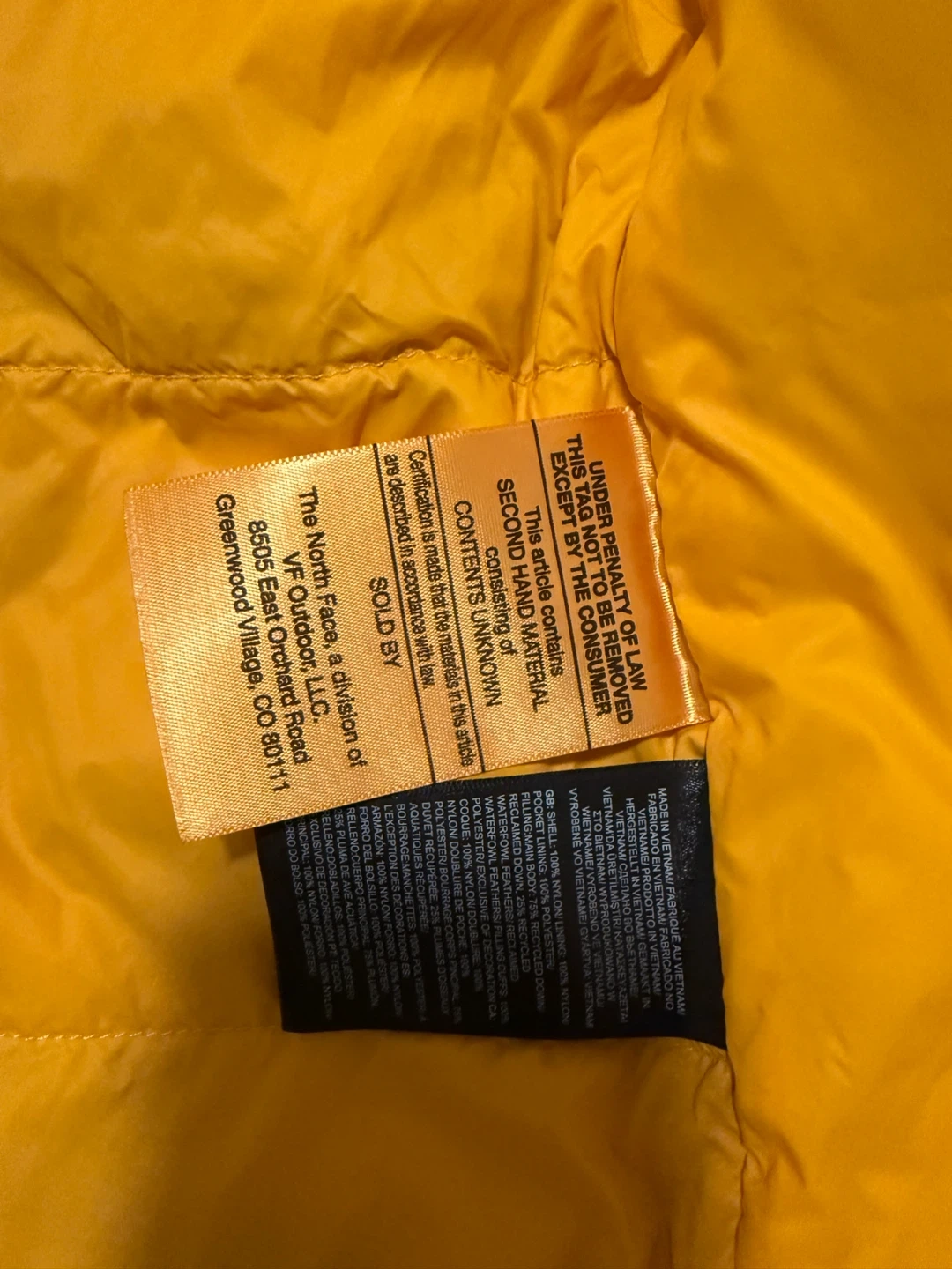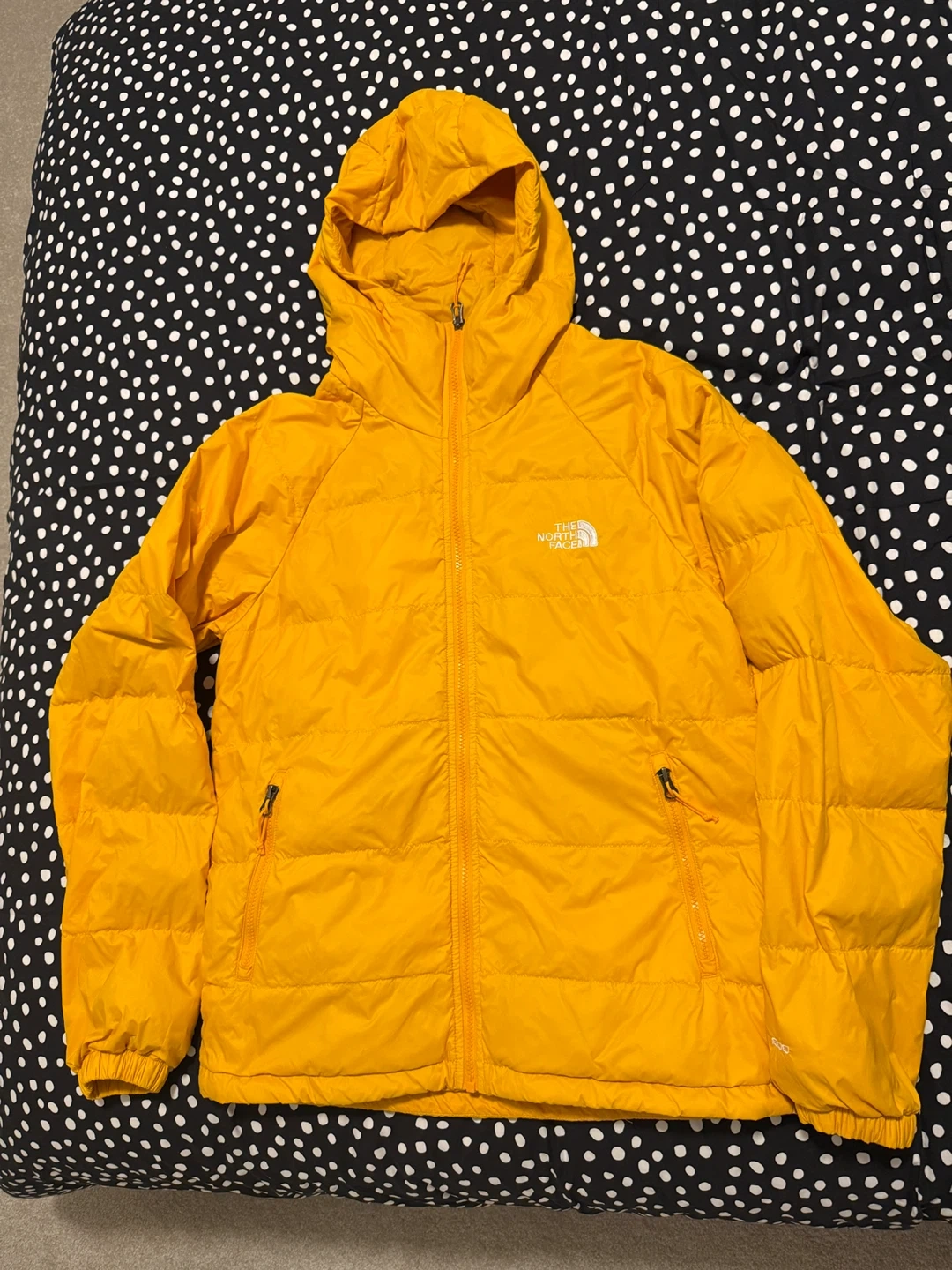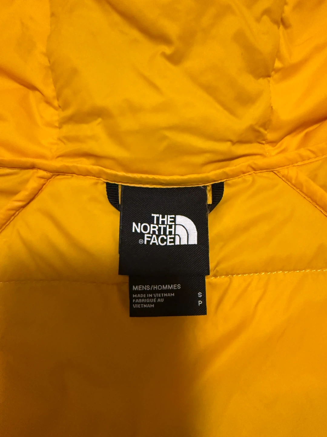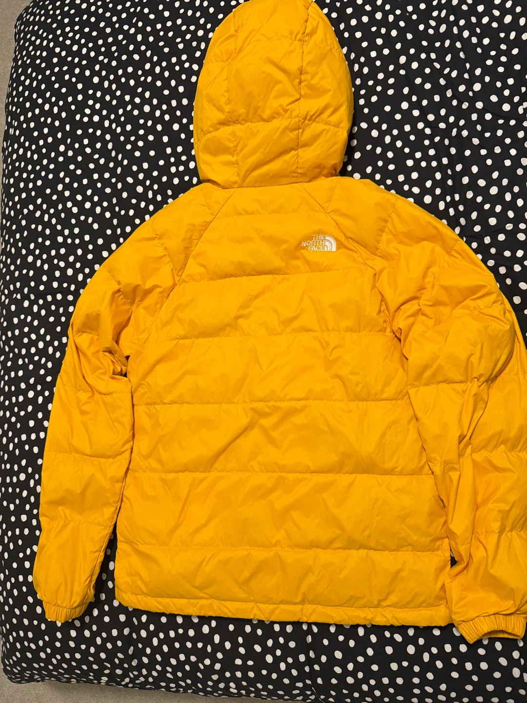 Selling a The North Face puffer jacket in a vibrant yellow colour! It's a size small and features the classic 600 fill power. Great for staying warm and stylish during those chilly Canadian days