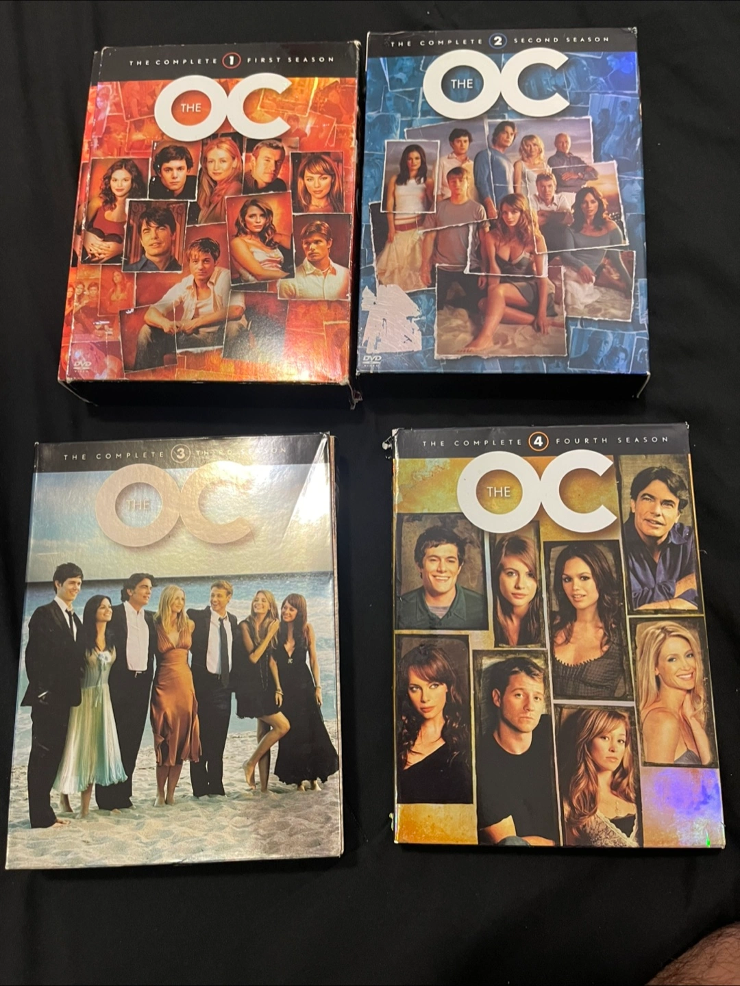 Complete DVD collection of The O.C., including the first four seasons. Boxes feature various cast members. A perfect way to unwind on a slow afternoon.