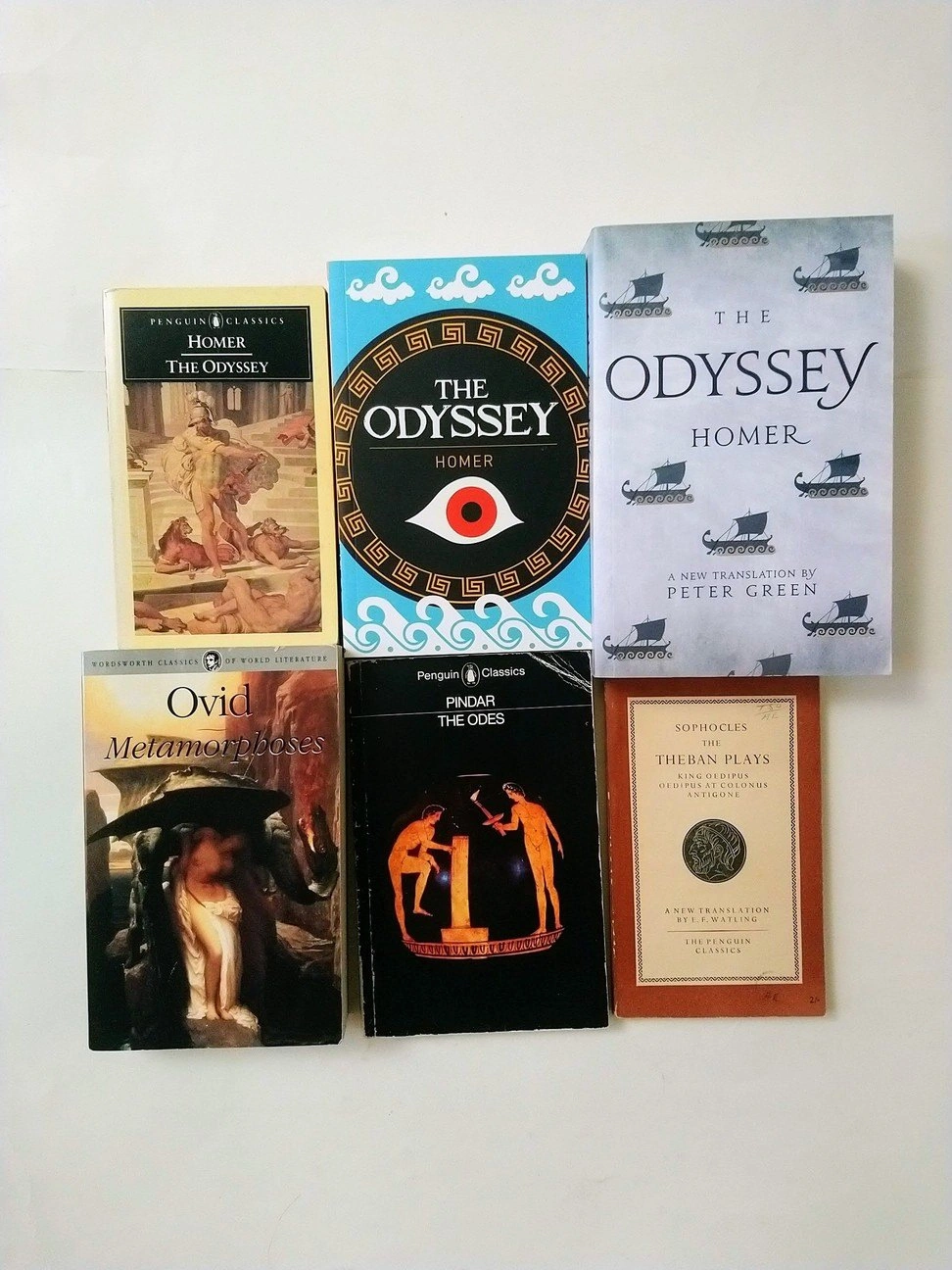 Location: Yonge and College /downtown Toronto $5 each. Cash only; prices are firm. Homer: - The Odyssey (E.V. Rieu, trans.) - The Odyssey (T. E. Lawrence, trans.) - The Odyssey (Peter Green, trans.) Also: - Metamorphoses - Ovid - The Odes - Pindar - The Theban Plays (Oedipus Rex, Oedipus at Colonus, Antigone) - Sophocles Feel free to check out my other book posts as well!