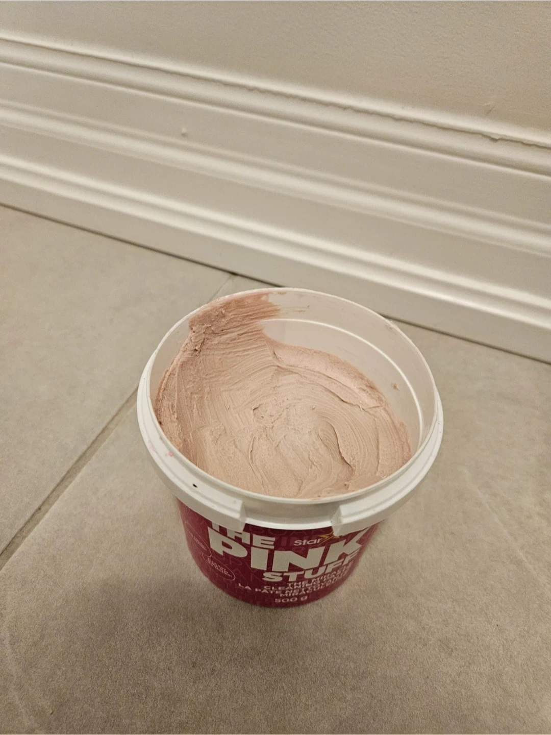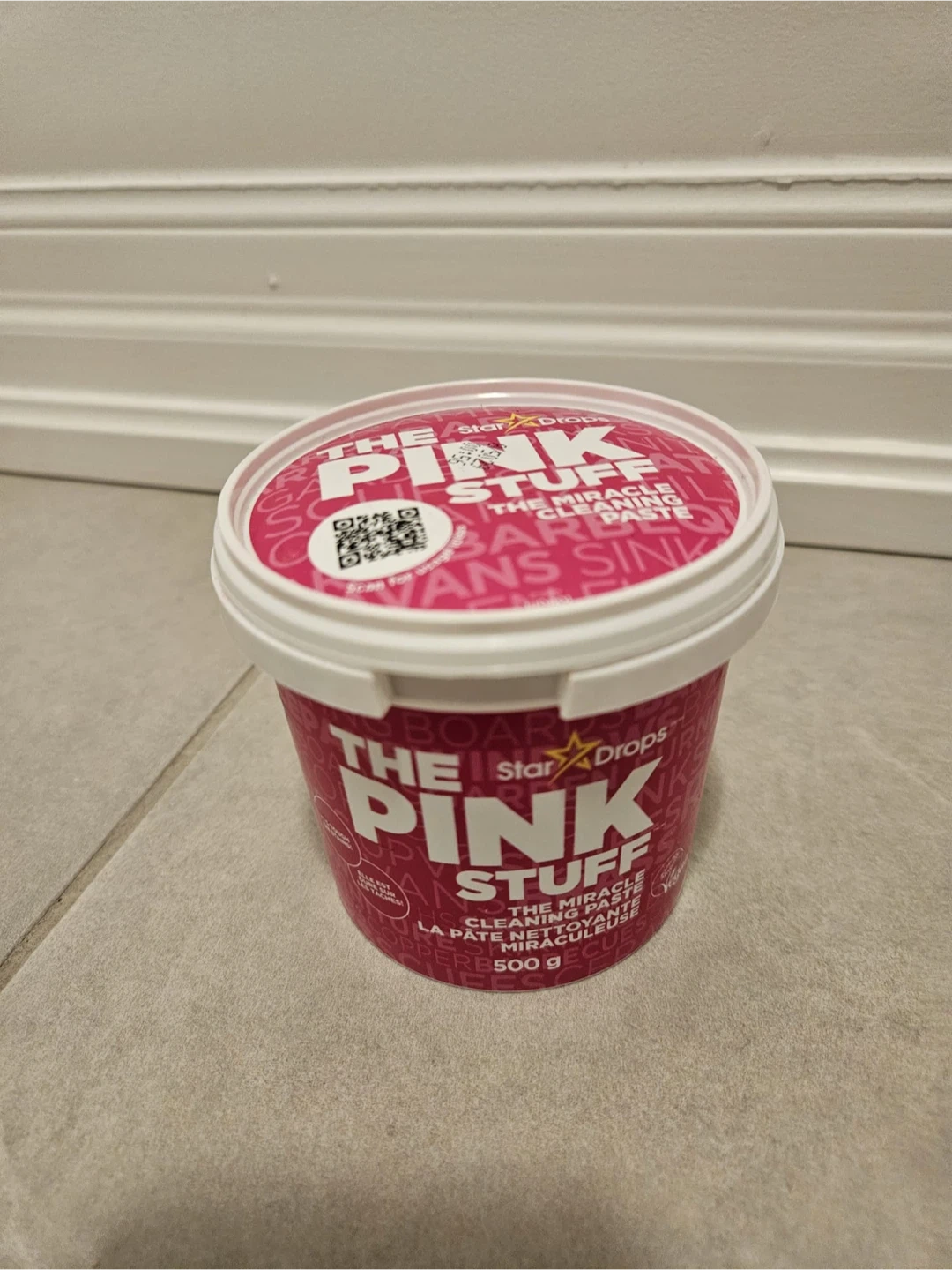 Selling a container of The Pink Stuff Miracle Cleaning Paste. It's great for cleaning a variety of surfaces and removing tough stains. The container is 500g.