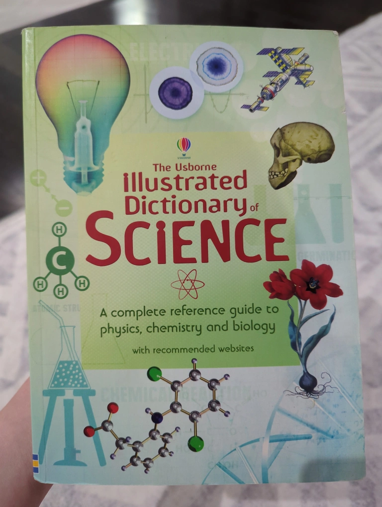 I'm selling The Usborne Illustrated Dictionary of Science. It's a complete reference guide to physics, chemistry, and biology. It also includes recommended websites for further learning! A great book for students or anyone interested in science