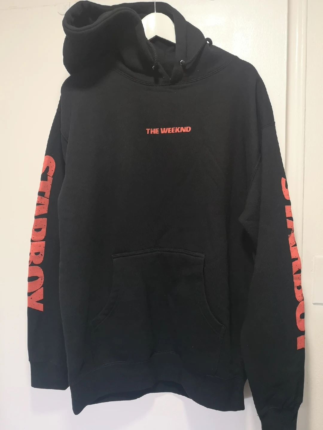 Selling a The Weeknd XO After Hours Til Dawn Tour hoodie in black, size medium! The hoodie is made of 70% cotton and 30% polyester. It features the XO logo and a lightning bolt design on the back. Perfect for any fan of The Weeknd!