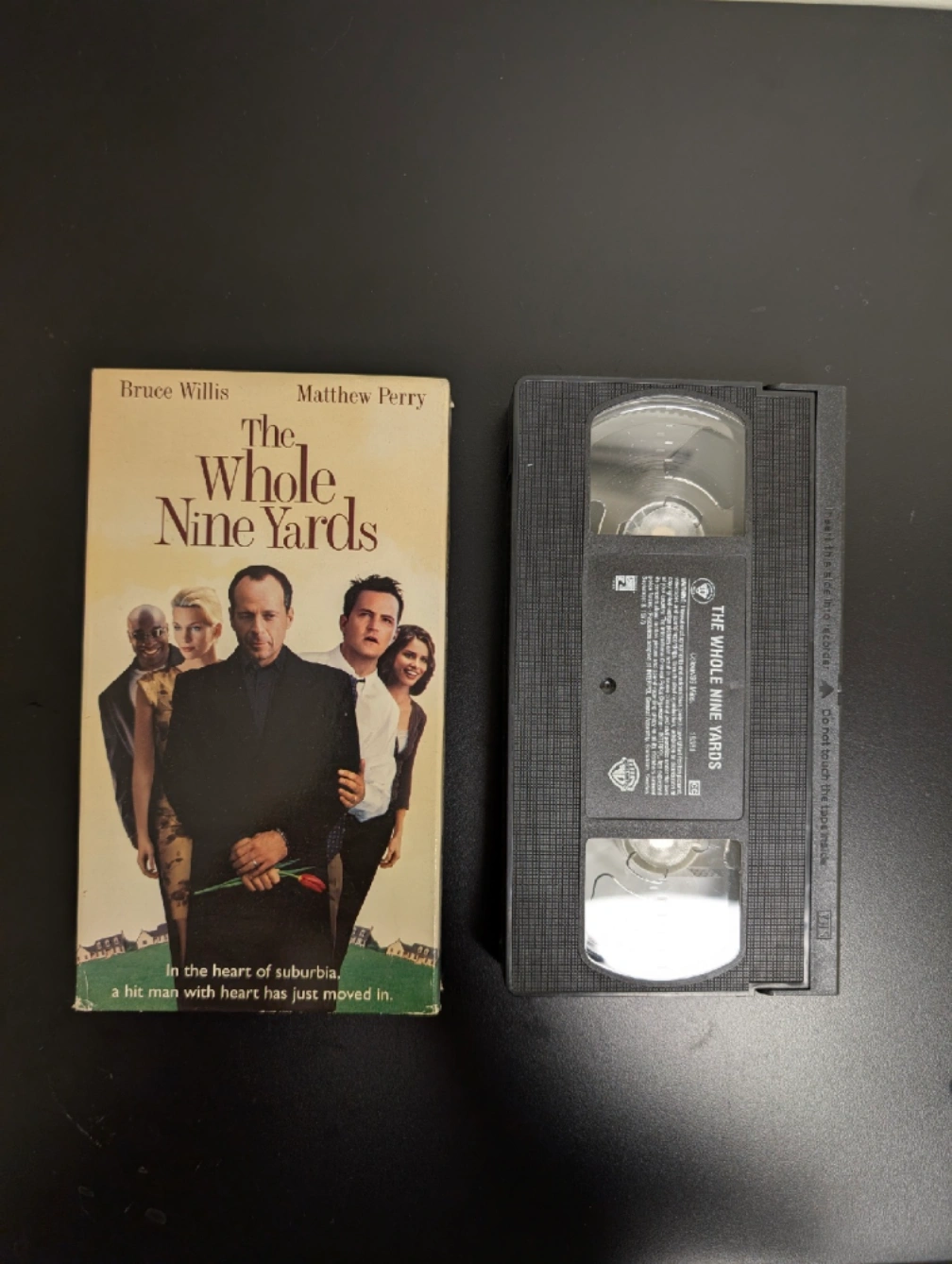 Selling a VHS tape of the movie "The Whole Nine Yards" starring Bruce Willis and Matthew Perry. The tape is in good condition!