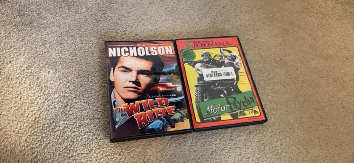 Selling two DVDs: Jack Nicholson's 'The Wild Ride' and Russ Meyer's 'Motor Psycho' Both in great condition and ready for your viewing pleasure