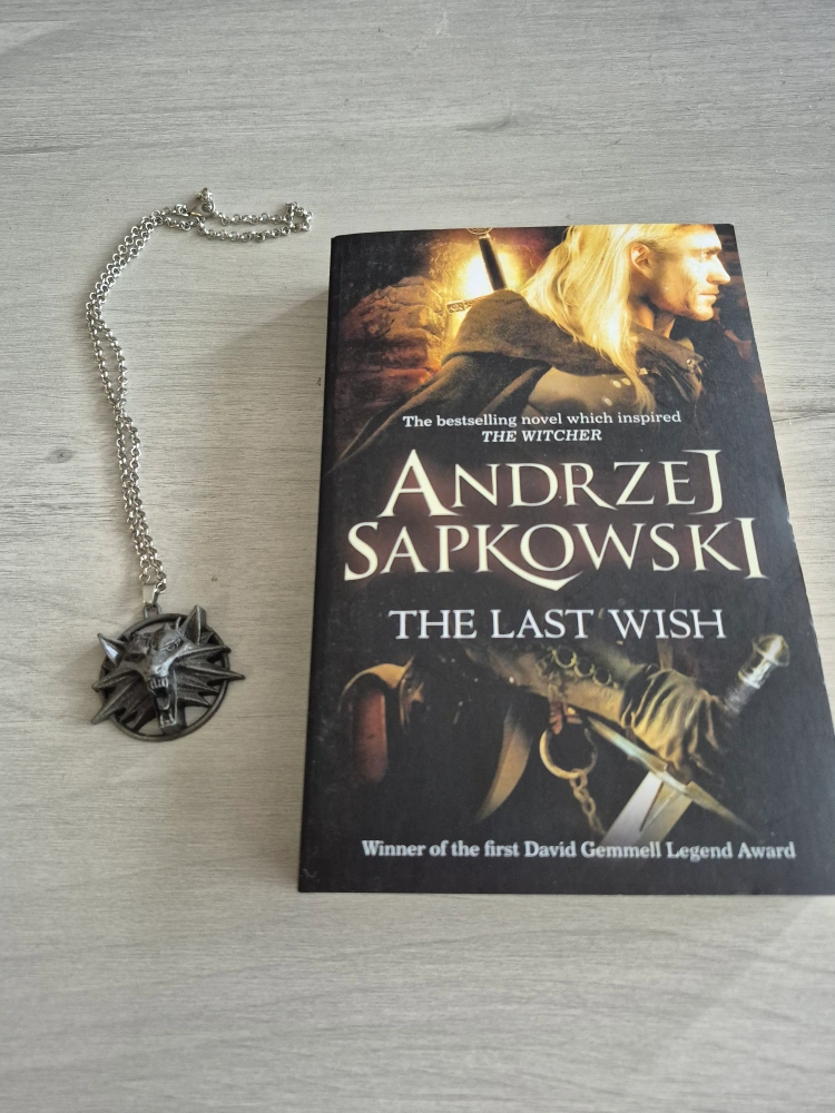 The first novel in the Witcher series by Andrzej Sapkowski, The Last Wish is a set of short stories following the tales of Geralt of Rivia; included also is his Wolf Medallion necklace from the games