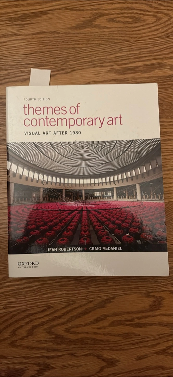 Selling a copy of "Themes of Contemporary Art: Visual Art After 1980", Fourth Edition by Jean Robertson and Craig McDaniel, published by Oxford University Press. It's a great resource for anyone interested in visual art after 1980