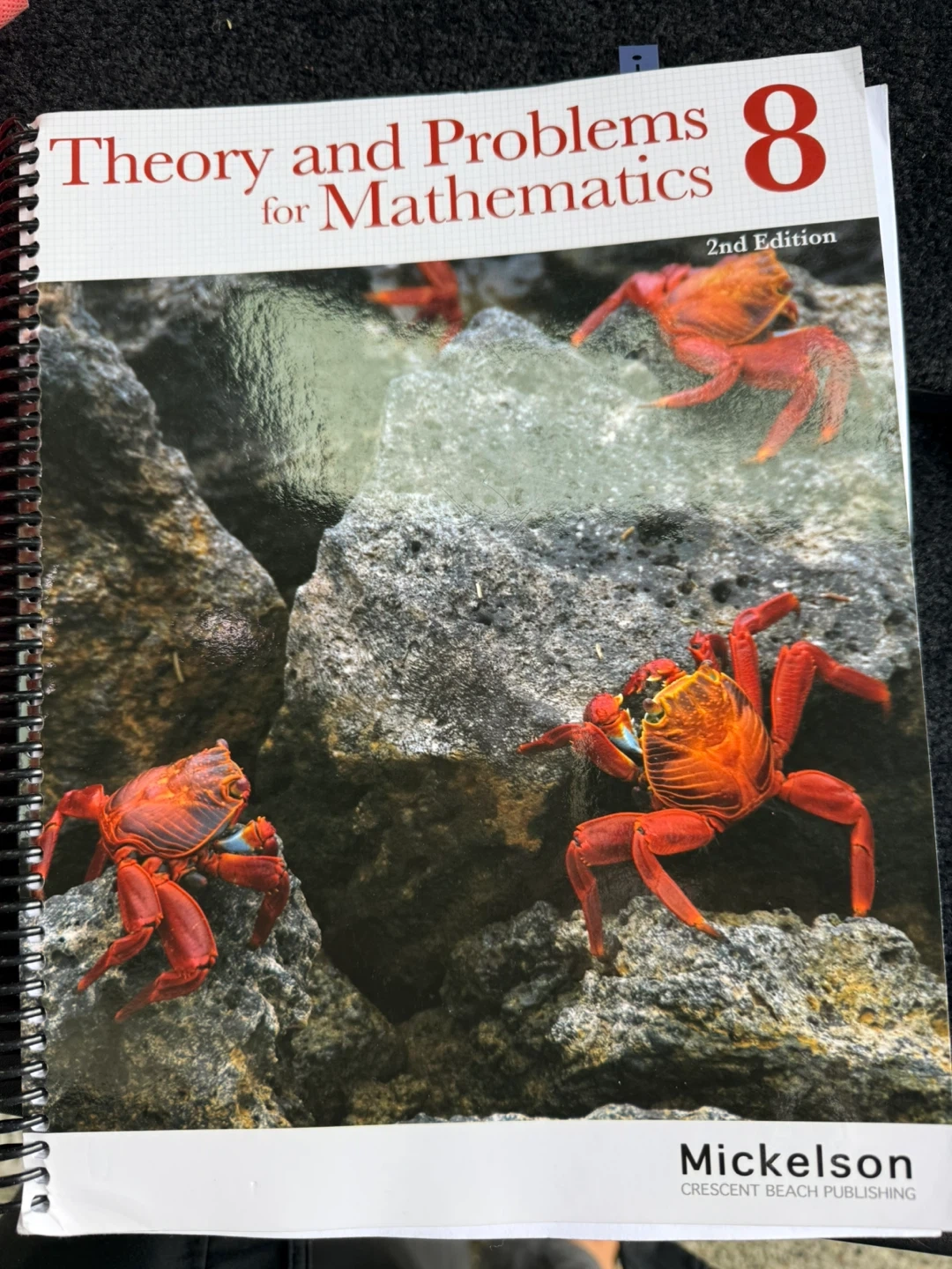Selling a copy of "Theory and Problems for Mathematics 8, 2nd Edition" by Mickelson. It's in great shape and ready for a new home!
