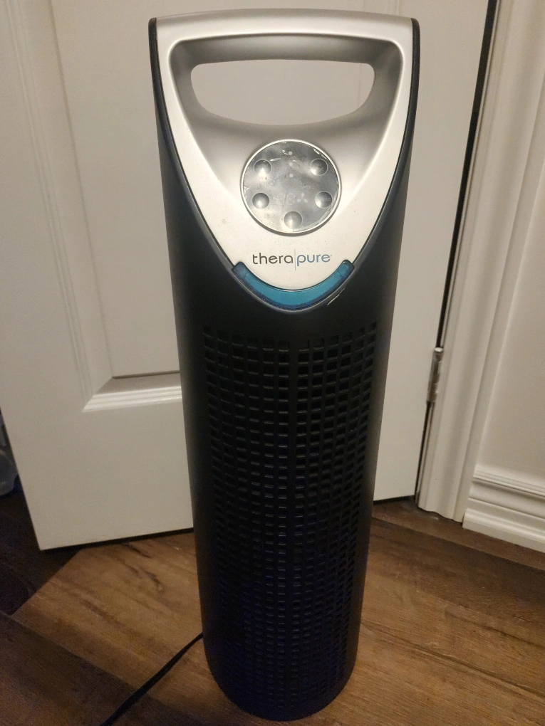 Selling a TheraPure tower air purifier. It has a UV/VOC filter clean function, night mode, timer, and adjustable speed settings. Great for keeping the air clean and fresh!