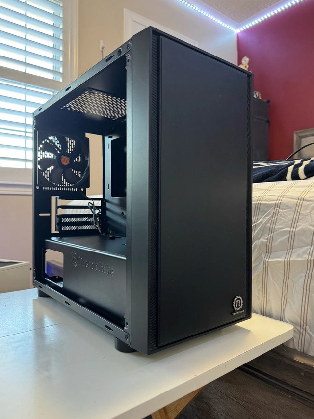 Thermaltake Versa H17 Pc Case MATX, good condition, fully functional, has 2 metal panels, 3 usb ports and an extra 120mm fan in the back. Perfect for budget gaming pc builds or computers with no rgb. Can also include extra 120mm fans upon request. Public meetup/pickup preferred.