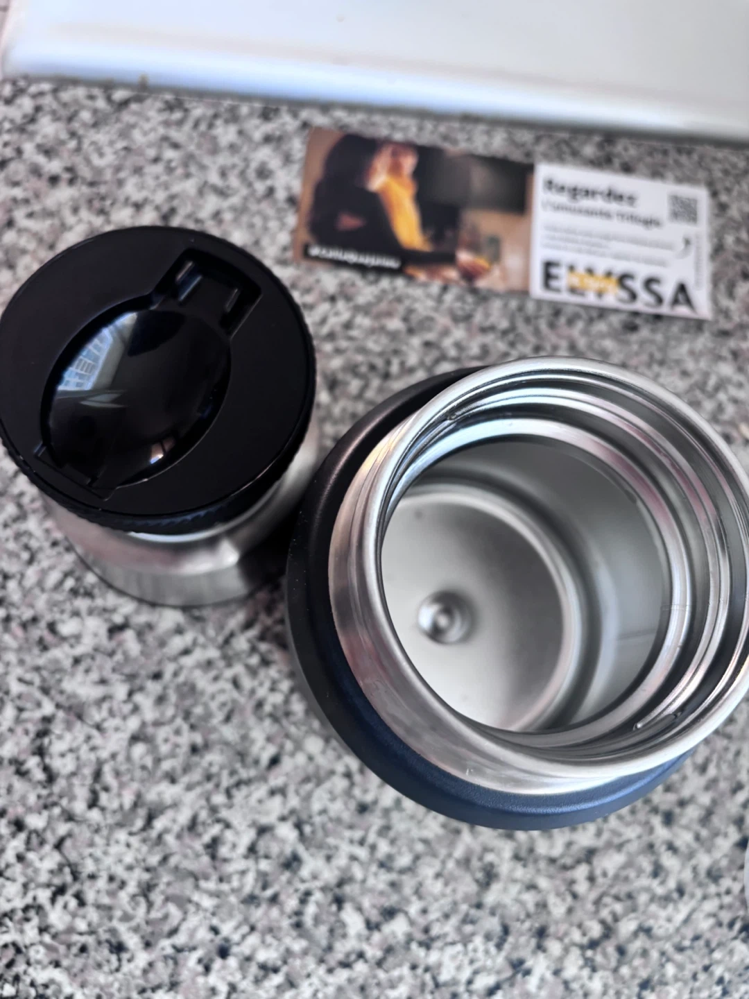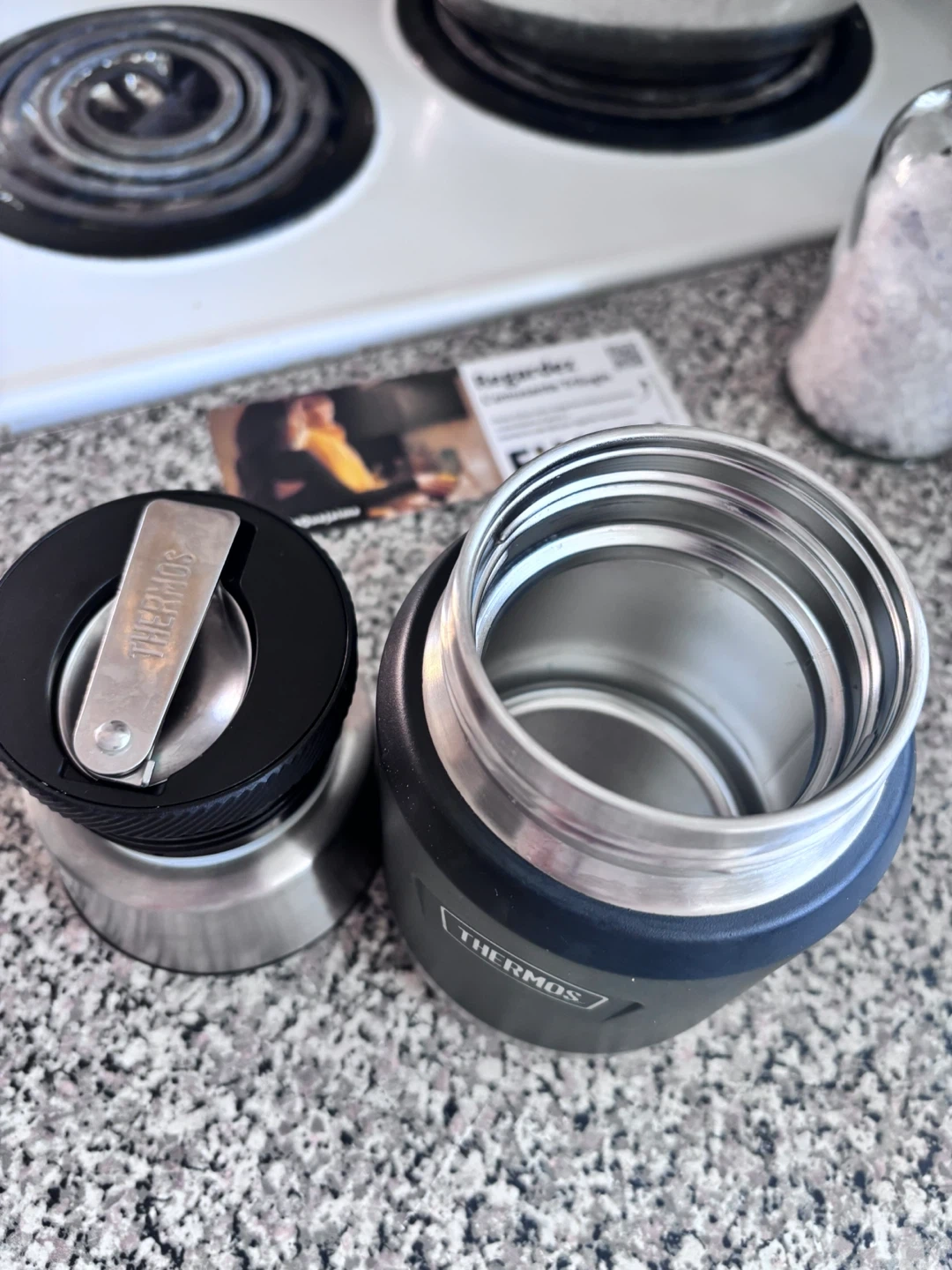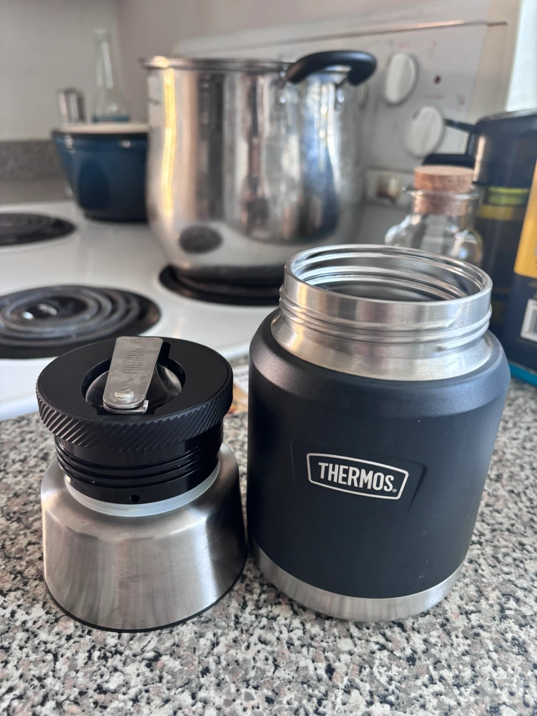 Selling a Thermos food jar in black and silver tones. It's in great shape (just used 2/3x for picnic) and good for hot or cold soup/food!