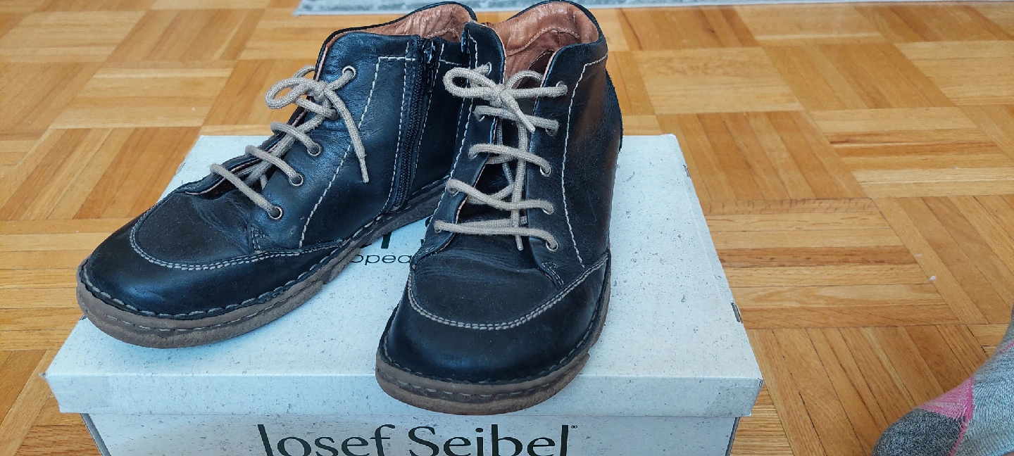 Selling a pair of Think! black leather ankle boots. They are in used condition. Please see photos for details! Joseph Seibel Brand, size 8 Women.