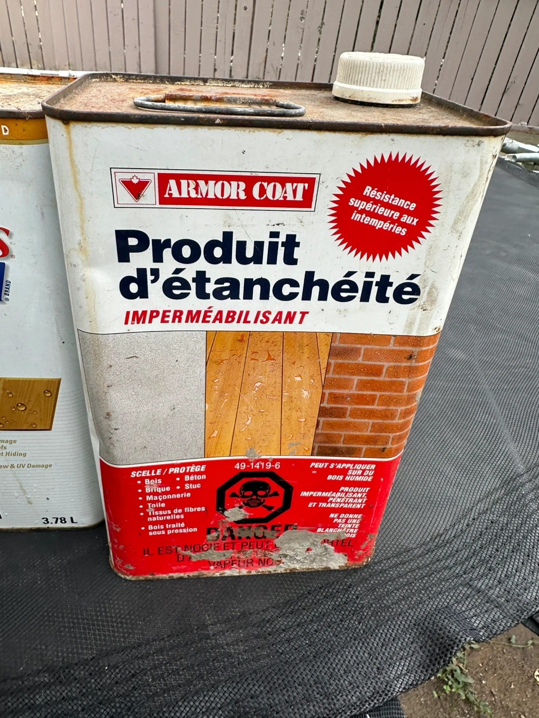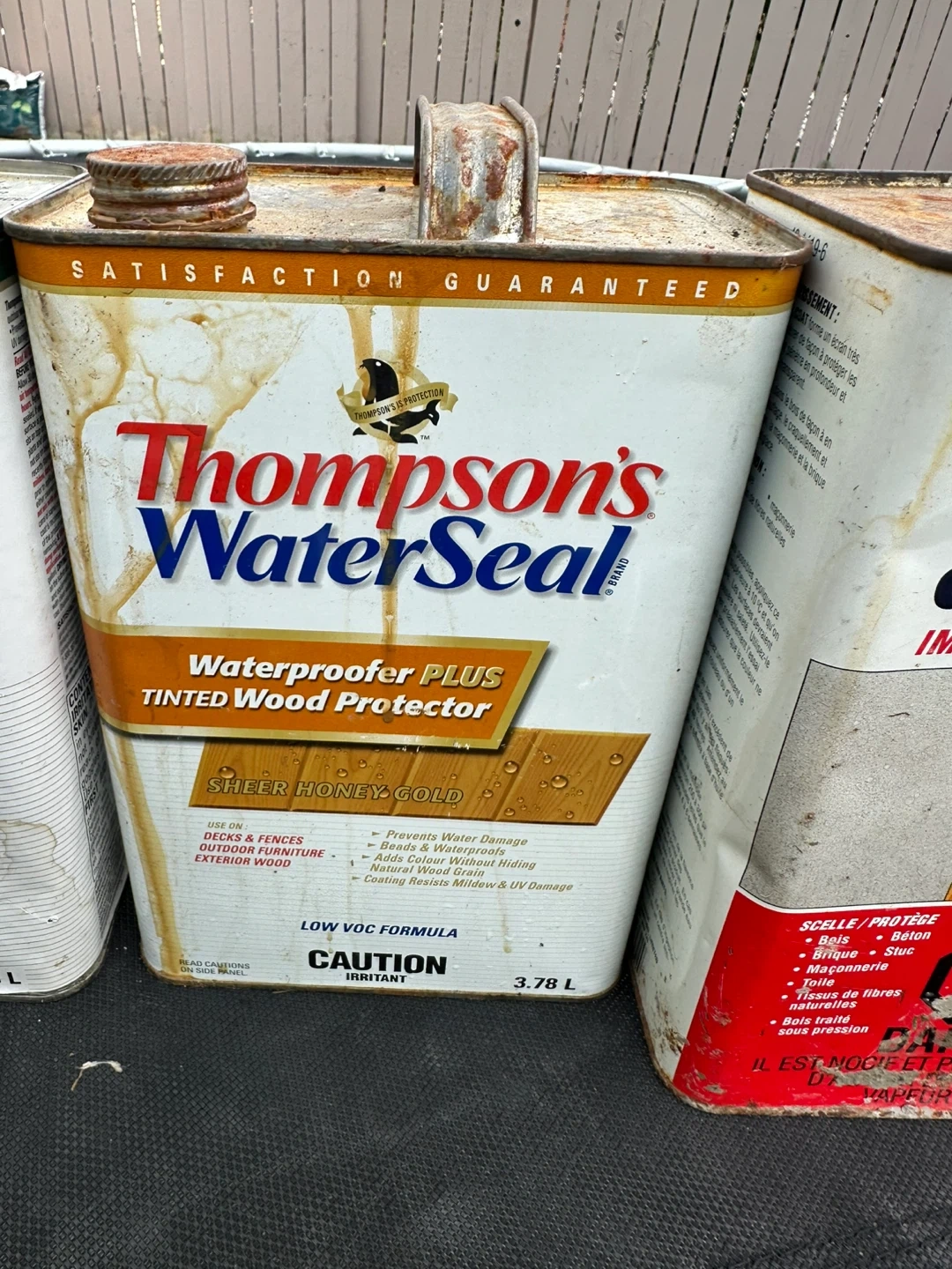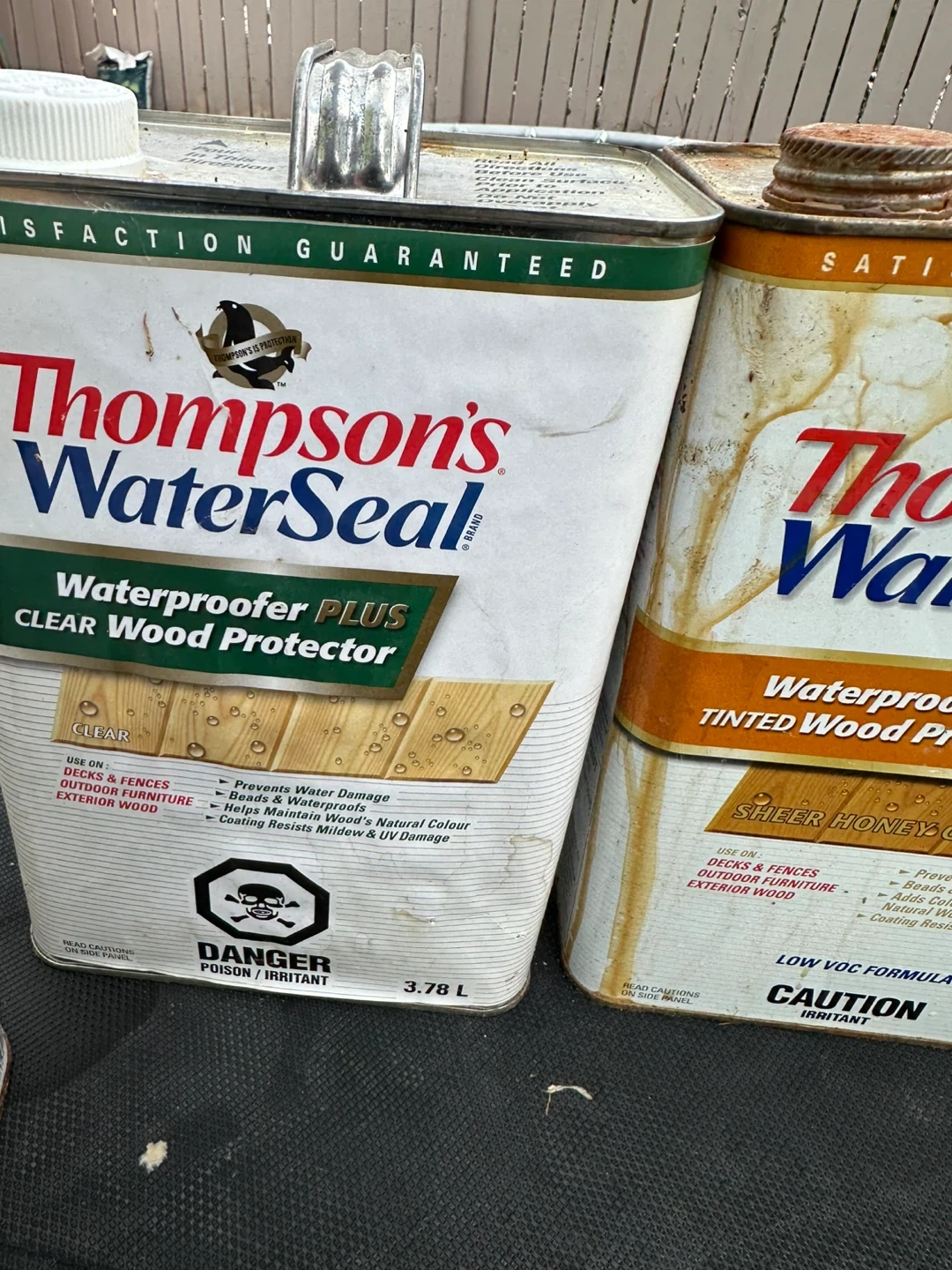 Selling Thompson's WaterSeal and Armor Coat wood protector. Great for fences, decks, outdoor furniture, and exterior wood. 3.78 L