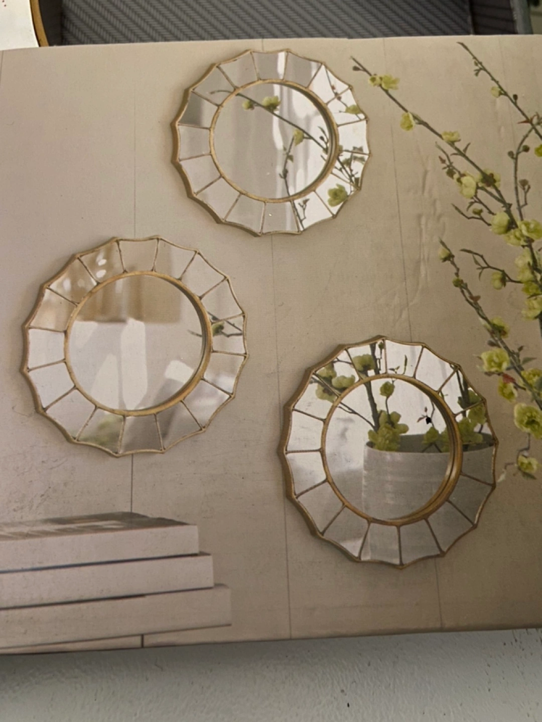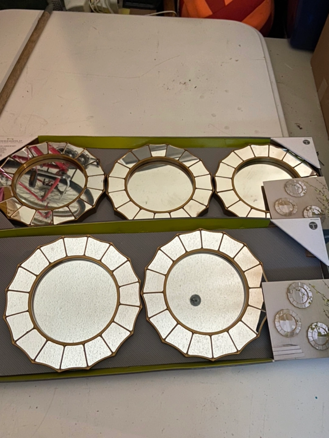 Selling a set of 8 Threshold decorative wall mirrors. They're in great condition and ready to add a touch of elegance to your space! The mirrors have a unique design and are perfect for creating a stylish gallery wall or accent piece Smoke/Pet free home Trunk