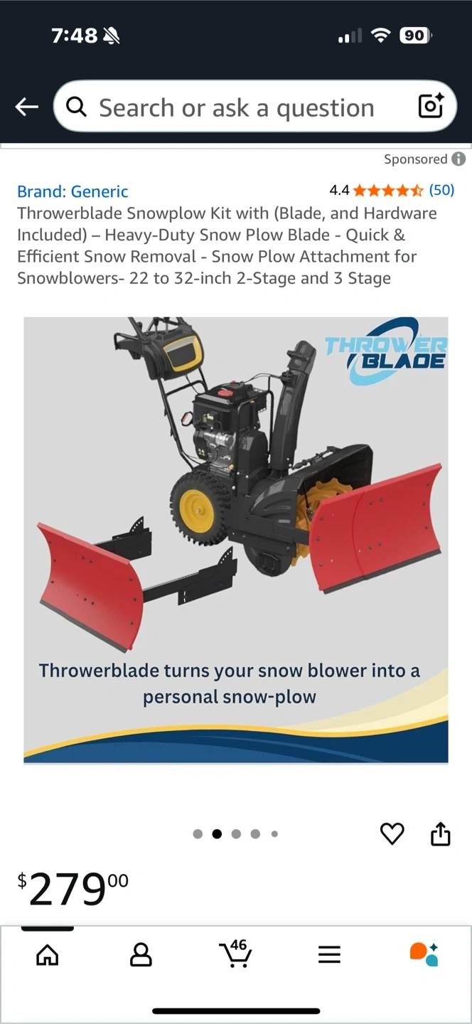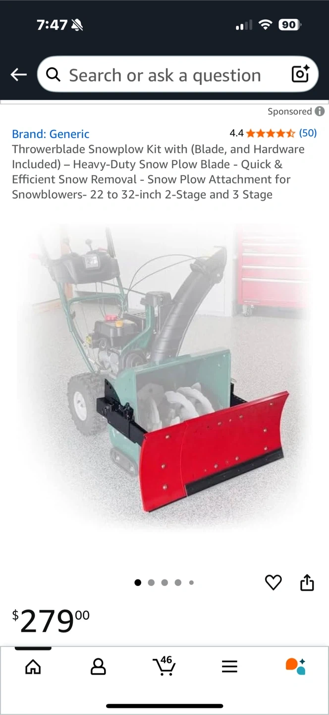 Throwerblade Snowplow Kit with Blade and Hardware Included. It's a heavy-duty snow plow blade for quick and efficient snow removal. It's a snow plow attachment for snowblowers, fitting 22 to 32-inch 2-stage and 3-stage snowblowers. Turns your snow blower into a personal snow-plow. Originally bought for $279