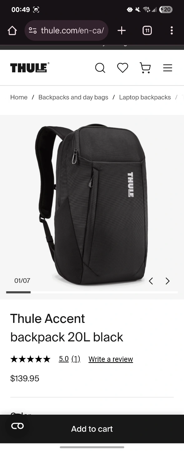 Black Thule Accent backpack. 20 litre capacity. THE PRICE IS FINAL , PLEASE DO NOT WRITE IF YOU ONLY WANT TO LOWER THE PRICE !!!!