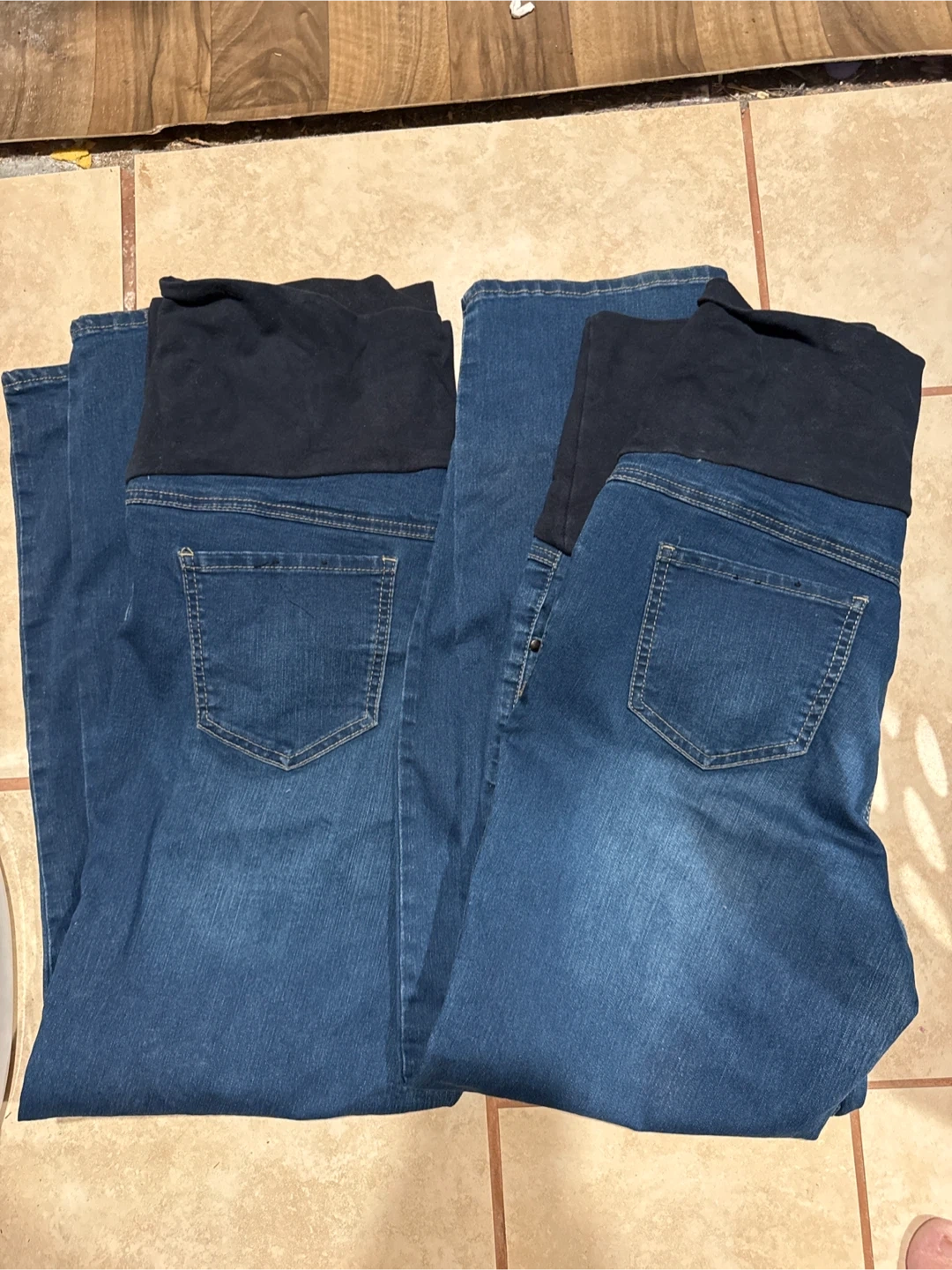 One size large (right) and one size XL (left) maternity jeans - in great condition. Pet and smoke free home