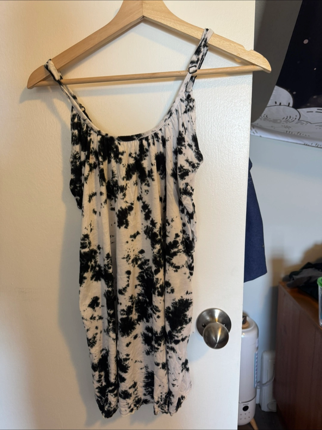 Selling a cute tie-dye dress. It features adjustable straps for a perfect fit. The material is lightweight and comfy, perfect for these hot summer days.