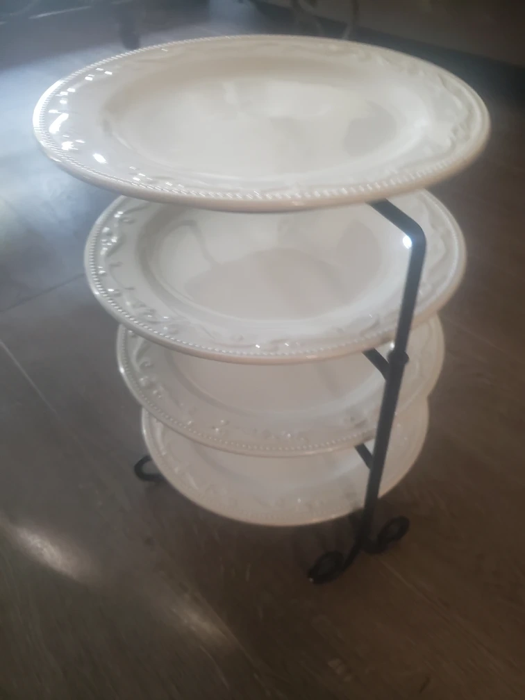 Selling a lovely tiered plate stand! It's in like-new condition and ready to add a touch of elegance to your kitchen or dining area. Perfect for displaying desserts, appetizers, or even decorative items. It's a great way to save space and showcase your favourite plates or treats!