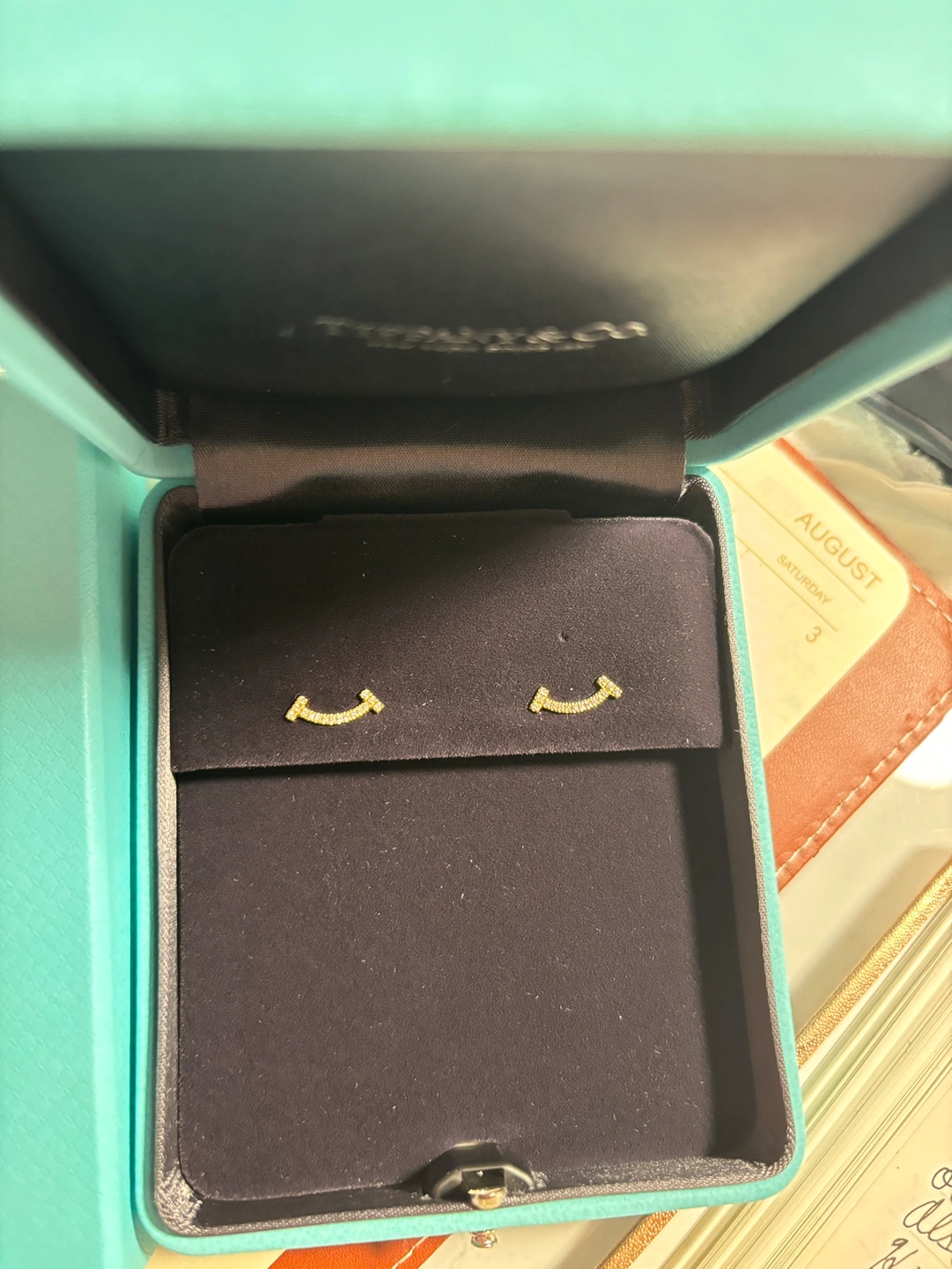 These are a pair of beautiful yellow gold Tiffany & Co. Smile Earrings. They are a classic design and would make a great gift. 18k yellow gold with round brilliant diamonds Carat total weight .06 Comes with box and bag