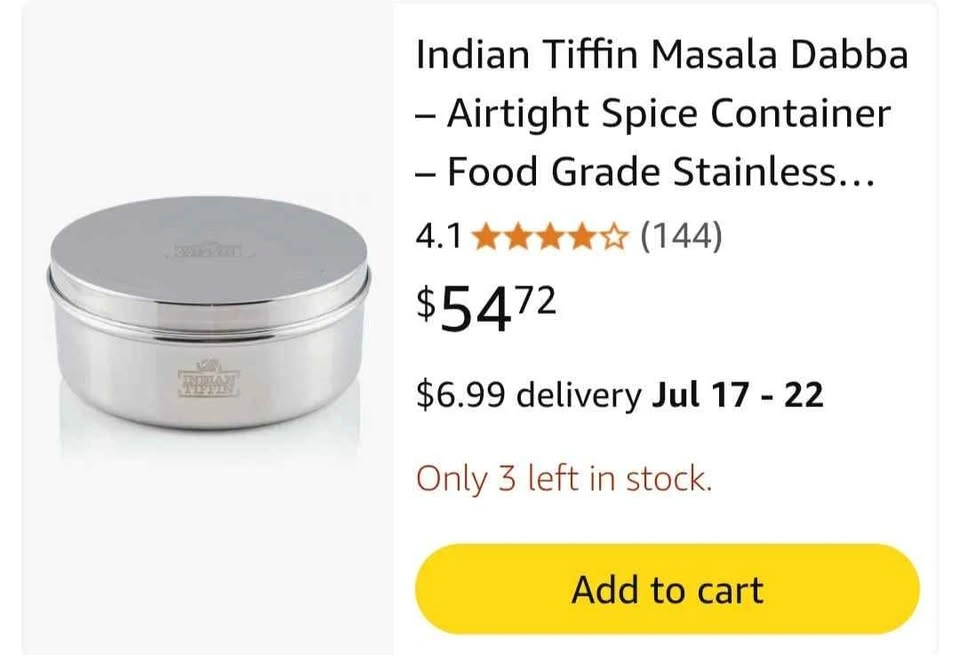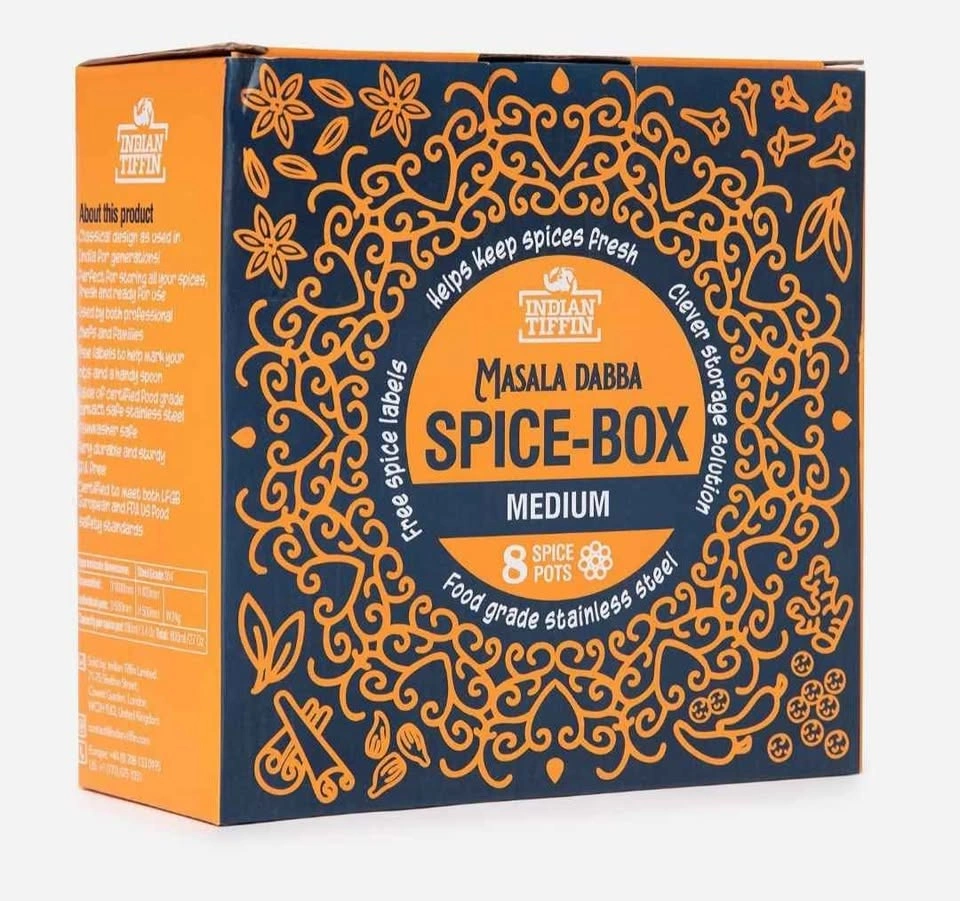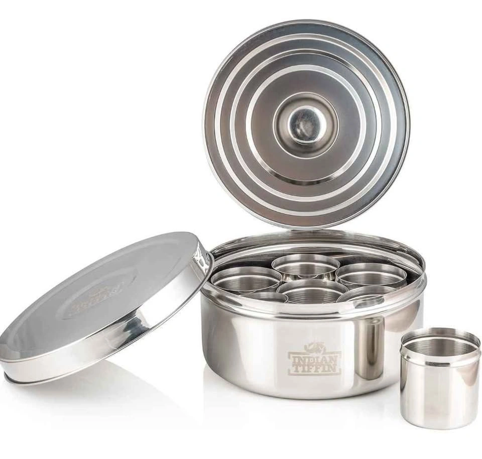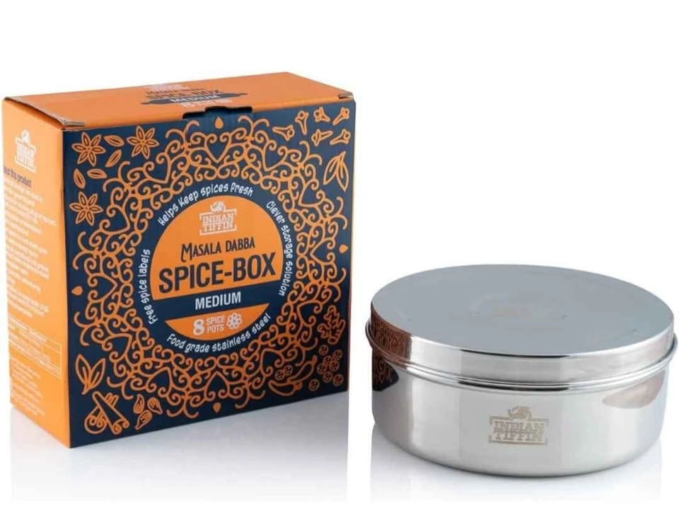 Indian-Tiffin Masala Dabba Airtight Spice Container Food Grade Stainless Steel with Spice Labels & Spoon, Medium S02-10