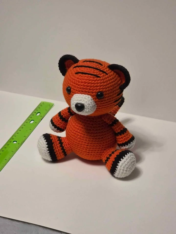 All of my crocheted pieces are handmade by myself using acrylic, cotton, wool or a mixture of any of them. If you would like specifics about a certain piece please ask. All items are priced very fairly at $5.00/hour of work put into it plus materials. Most have safety eyes which are basically impossible to remove so they are safe for children but some have stitched buttons, it should be obvious but again feel free to message me for specifics.