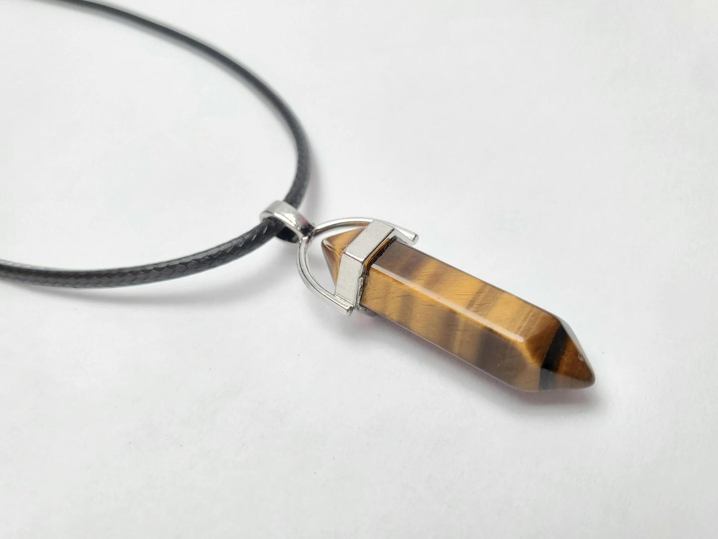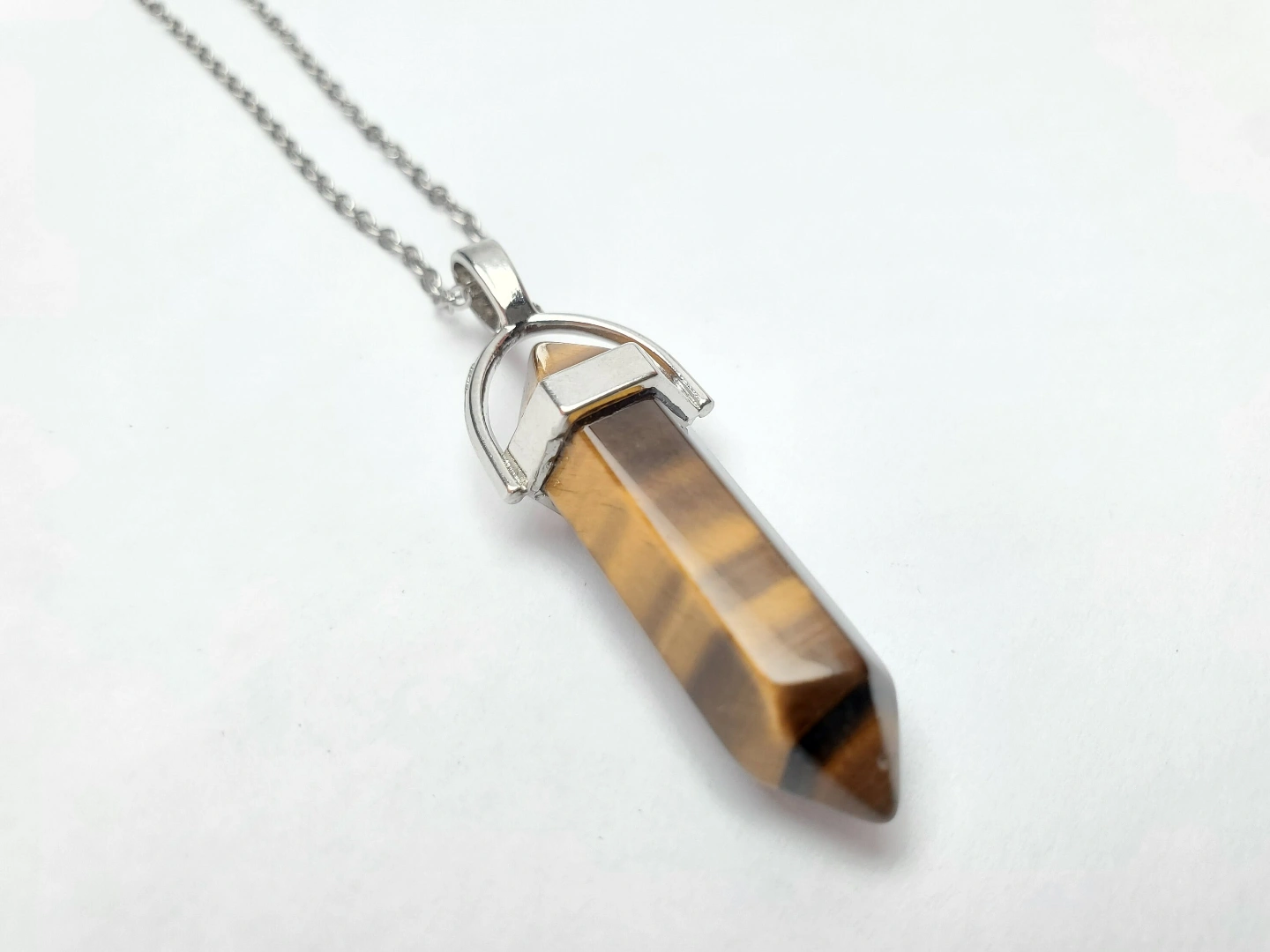 - SizeTiger's Eye Hexagon Pointed Pendant Necklace