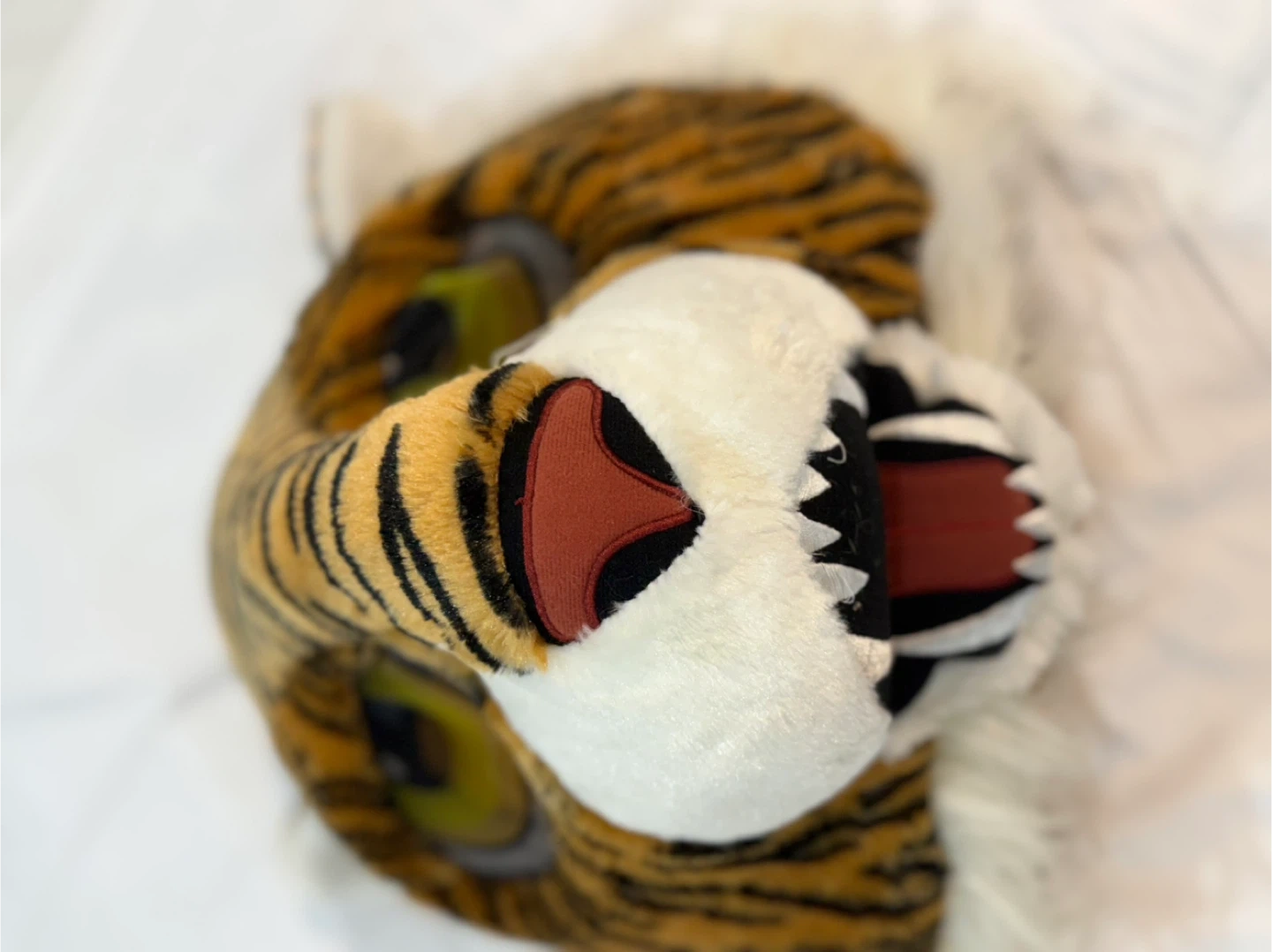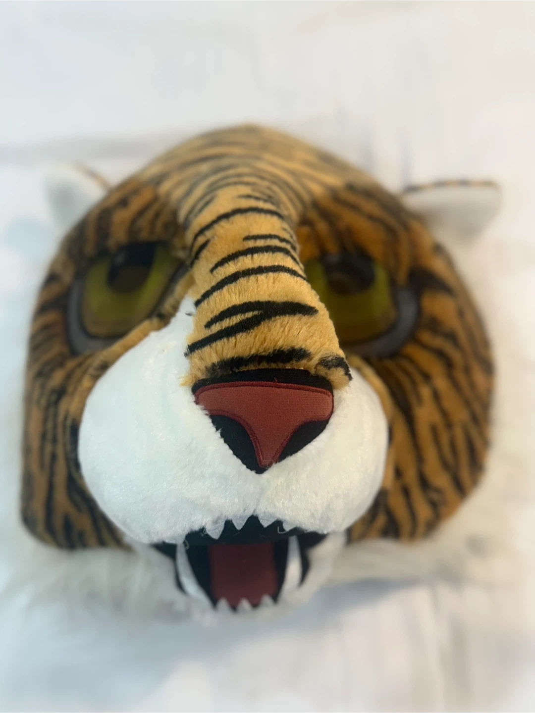 Here's a fun tiger mascot head! It's in great shape and ready for your next event or costume party or Halloween .