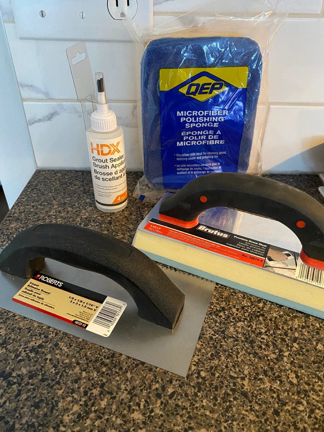 Getting rid of some tile installation supplies I no longer need: - Polyblend Non-Sanded Grout (Antique White) 1/3 of bag full - QEP Tile Spacers (3mm and 5mm) - HDX Grout Sealer Brush Applicator - QEP Microfiber Polishing Sponge - QEP Margin Trowel (5 in x 2 in) Everything you need to get your tiling project done!