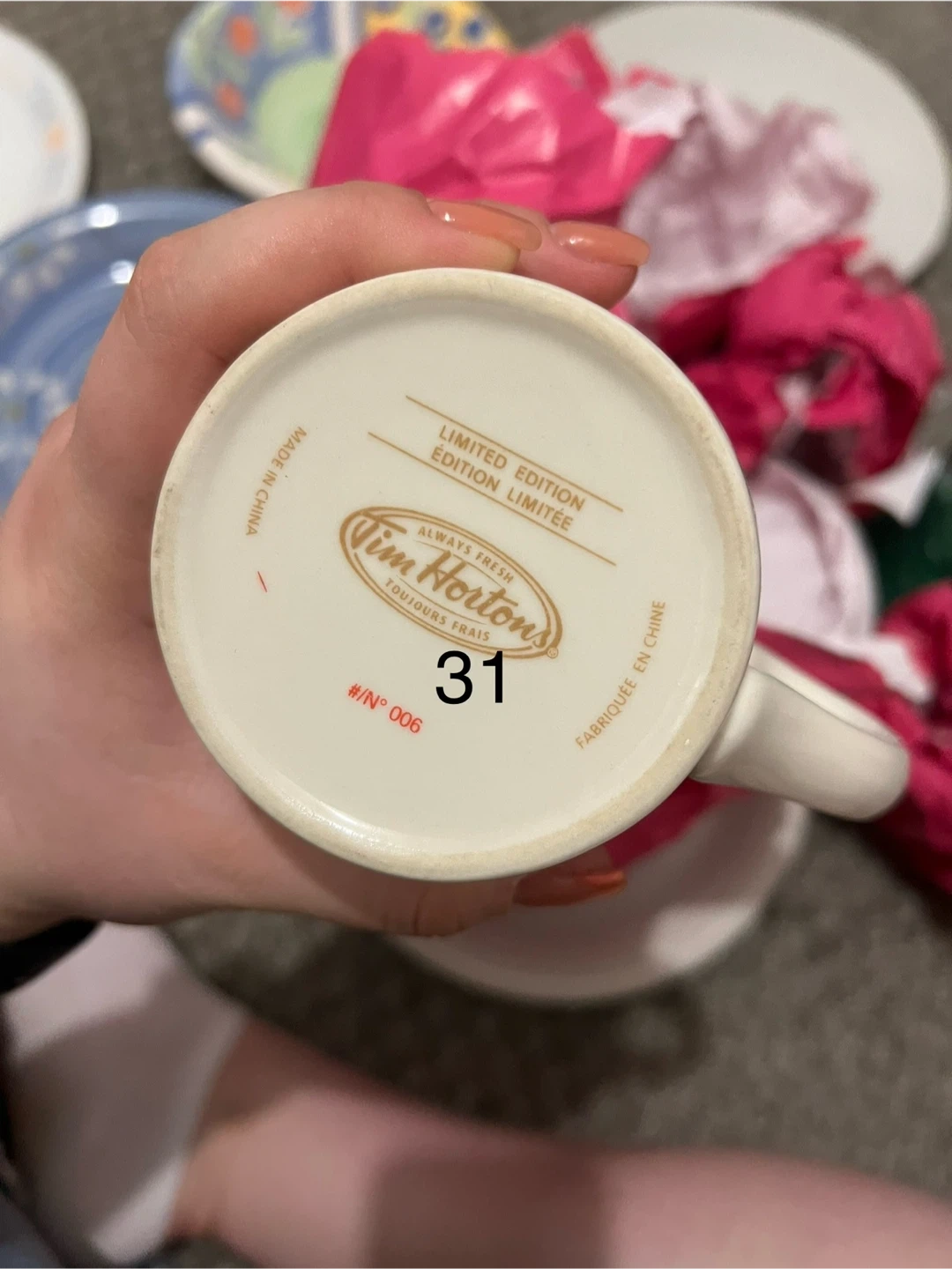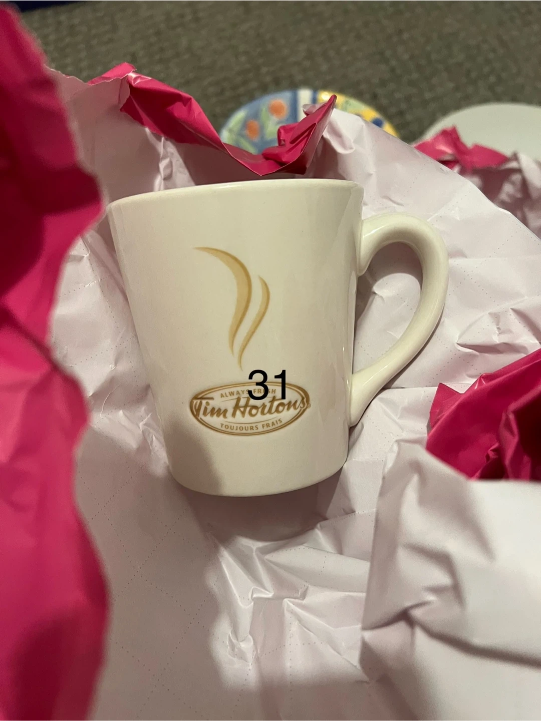 I'm selling a Tim Hortons limited edition mug! It's in great condition and ready for your morning coffee or tea. A must-have for any Tim Hortons fan!