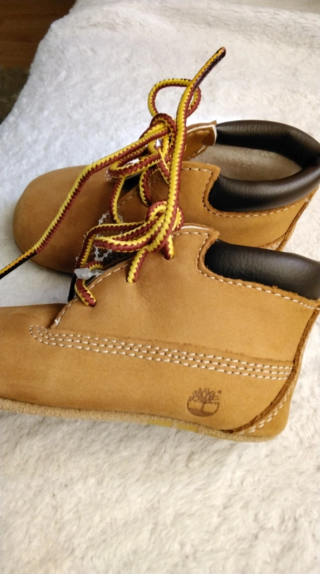 These adorable Timberland baby shoes are brand new ready for a little owner! The classic tan colour and Timberland logo make them a stylish choice for your little one's first adventures
