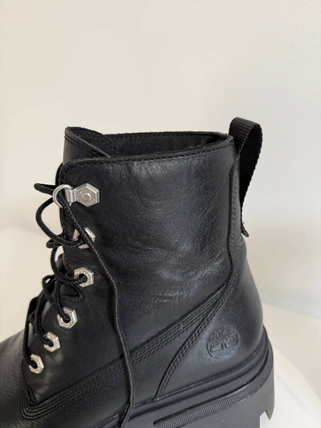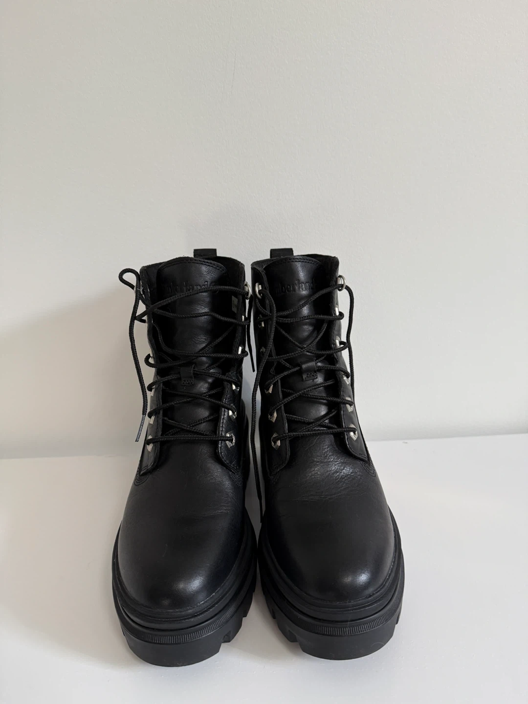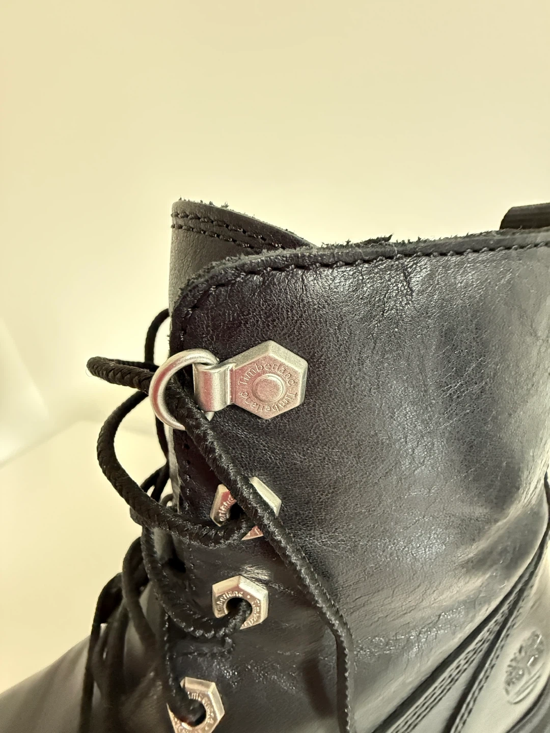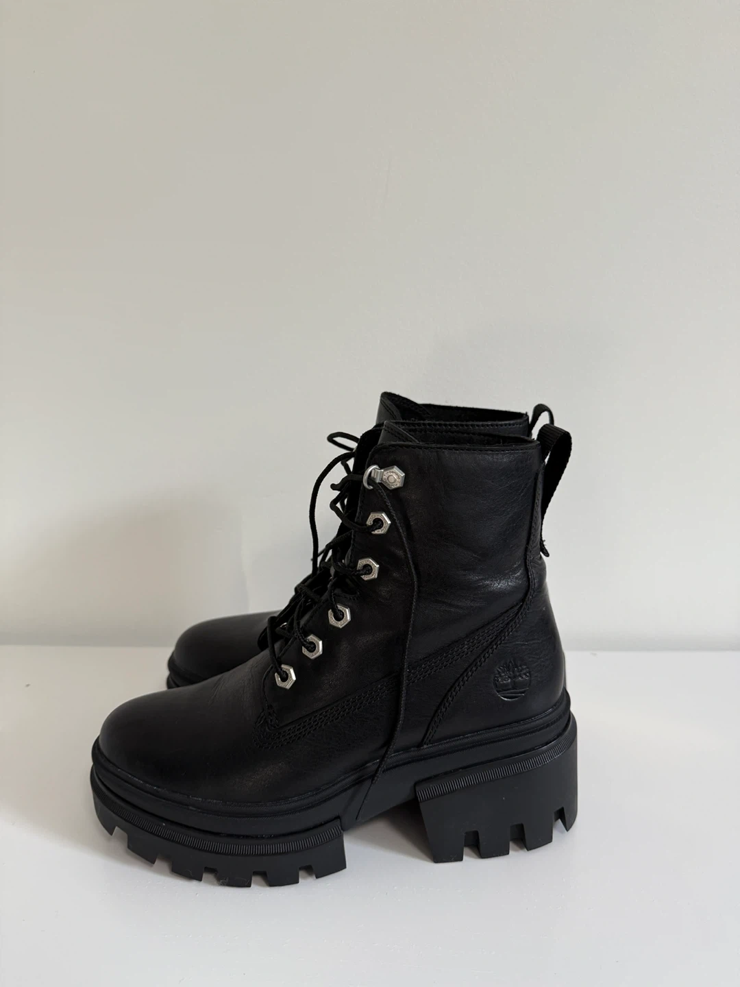 Selling a pair of Timberland platform boots in black leather. They are a women's size 7 US. These boots are in excellent condition and ready for a new home!