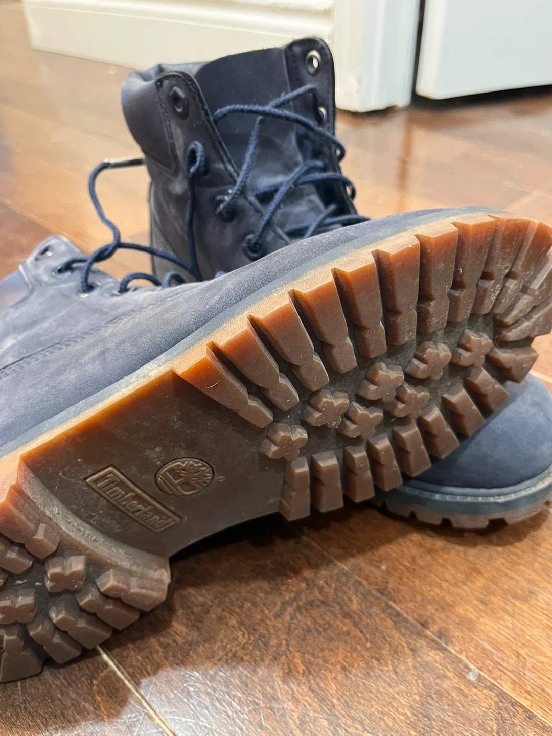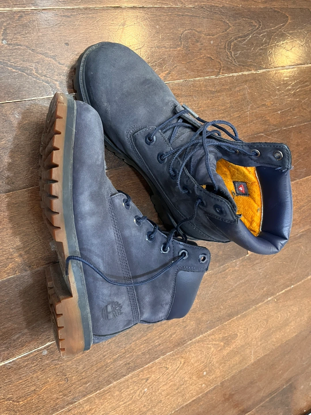 Selling a pair of Timberland boots in a lovely blue nubuck leather! They are a size 38. These boots are durable and stylish, perfect for everyday wear. They have some signs of wear, but are still in good condition and ready for a new home