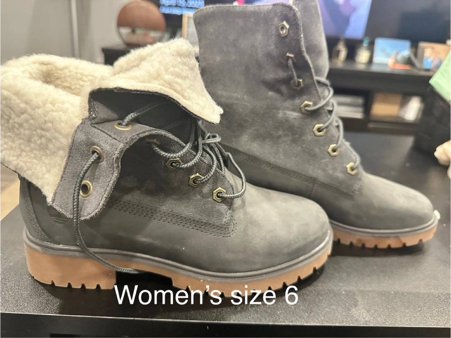 Women’s size 6 Grey timberlands with faux fur inside Never worn