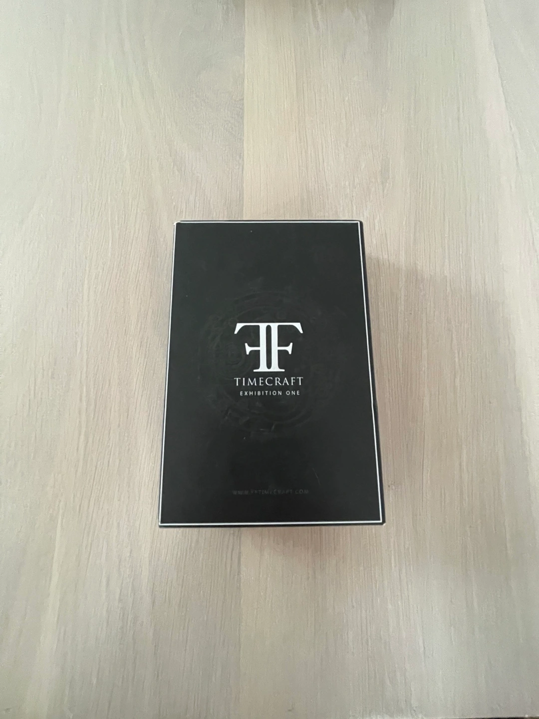 Men's automatic watch. Black leather band. Black face. Comes in original box.