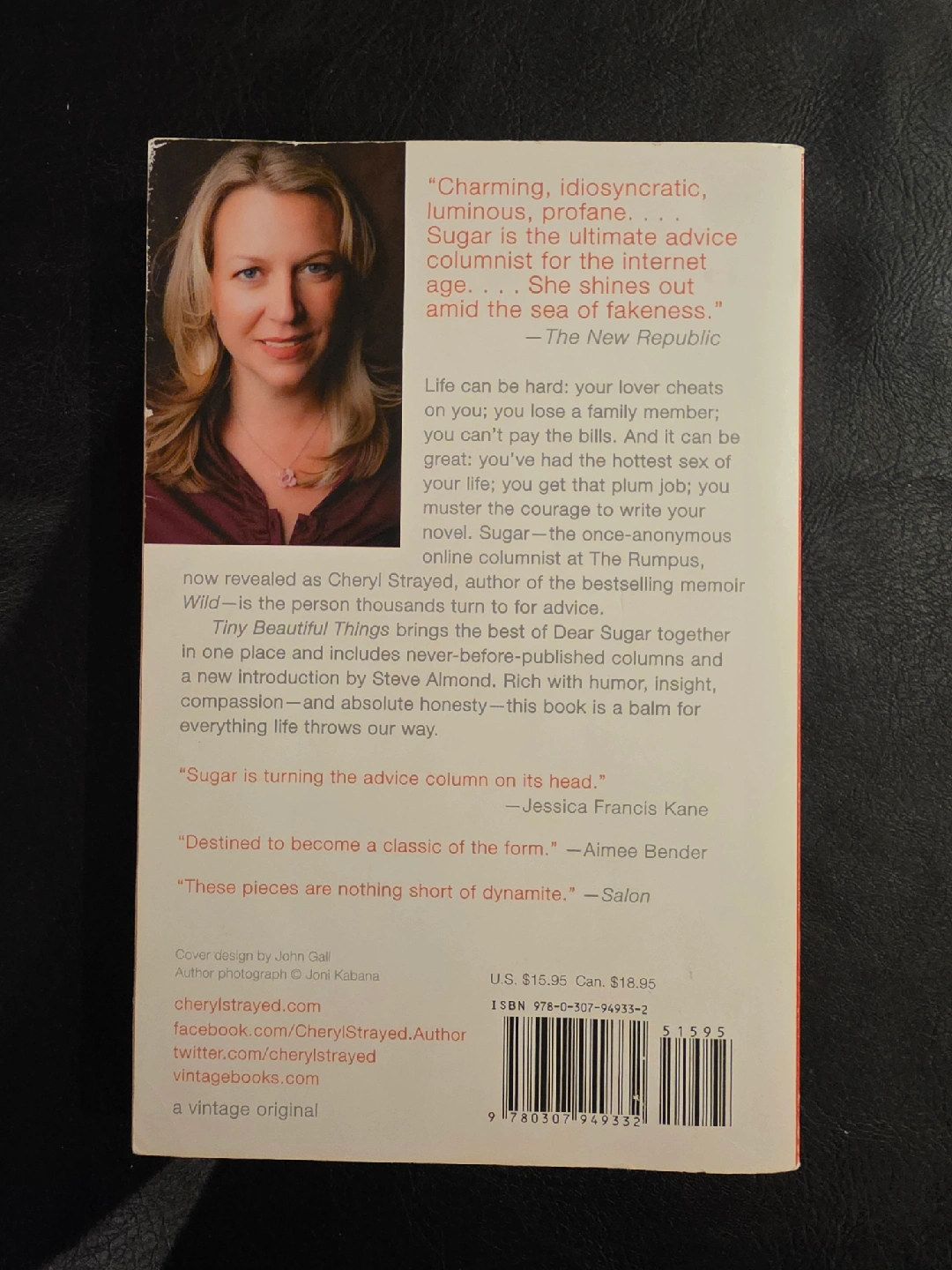 Selling the book 'Tiny Beautiful Things: Advice on love and life from Dear Sugar' by Cheryl Strayed It is a National Bestseller and from the author of WILD Rich with humor, insight, compassion and absolute honesty