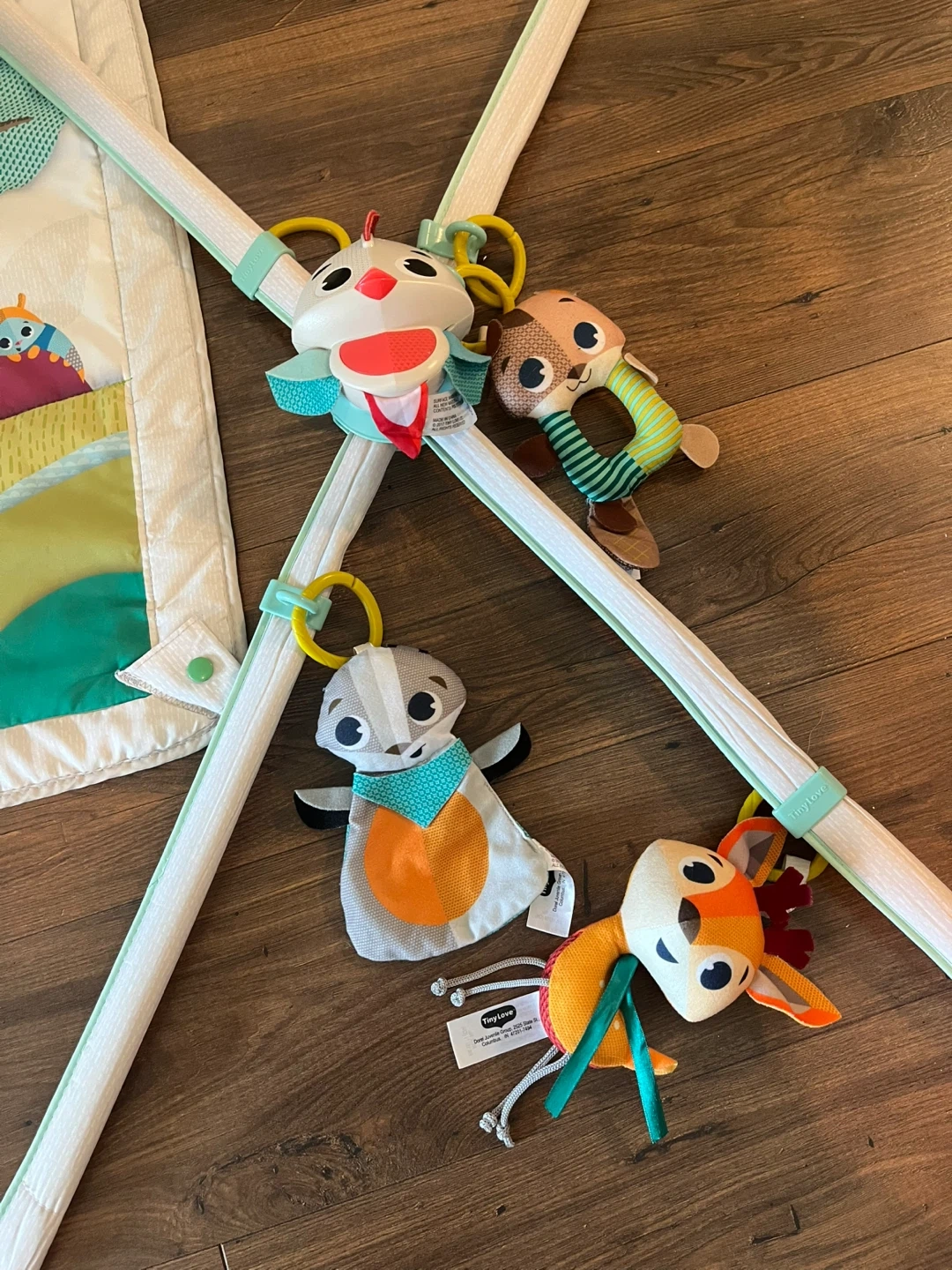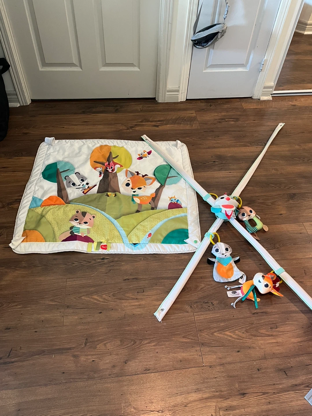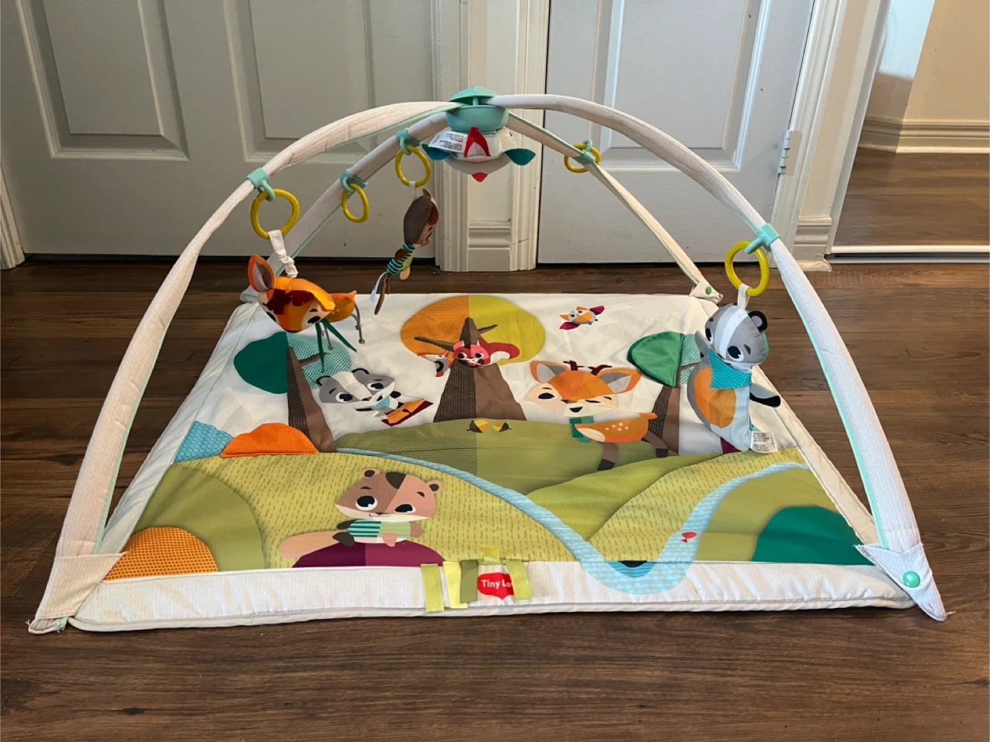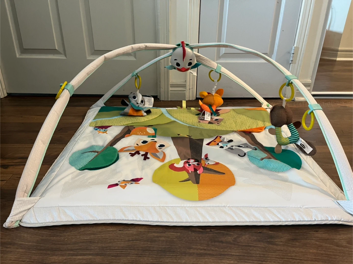 This Tiny Love Gymini activity play mat is perfect for your little one's development and fun! It features adorable woodland creatures and engaging textures to stimulate your baby's senses. The mat is in great condition and comes with all the original hanging toys (except mirror and teething toy). It's a wonderful way to encourage tummy time and early motor skills development for your baby.