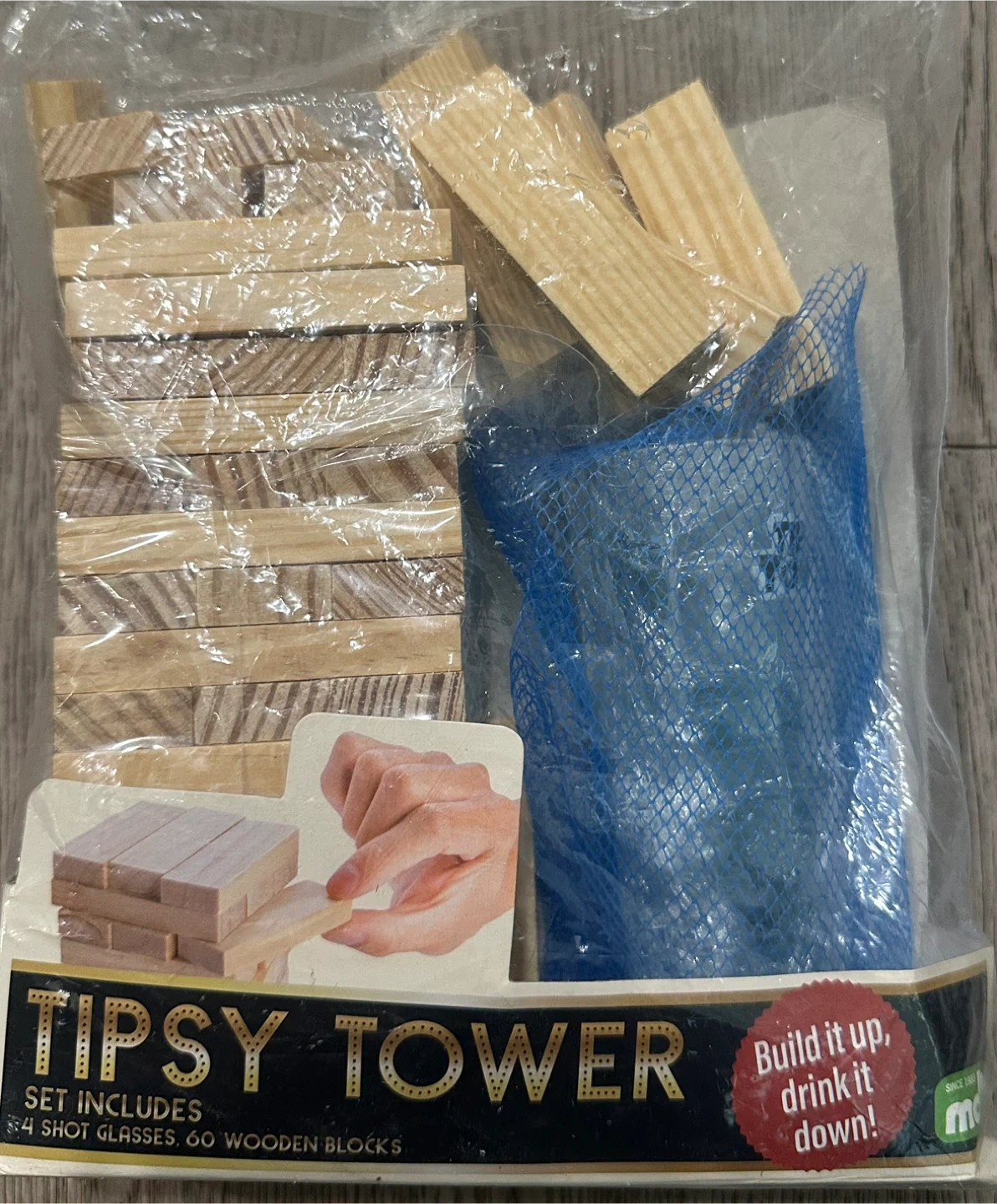 Tipsy Tower drinking game includes 4 shot glasses and 60 wooden blocks! Like New.