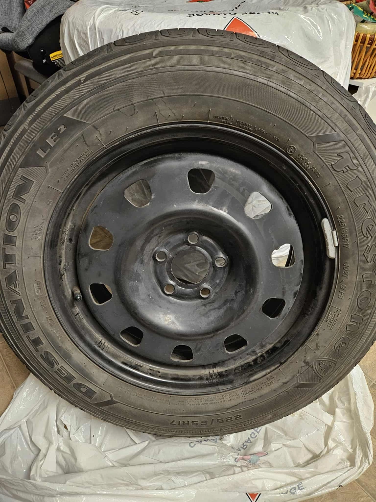 Selling a used Firestone Destination LE2 tire, size 225/65R17.Rim 17. It's in used condition.