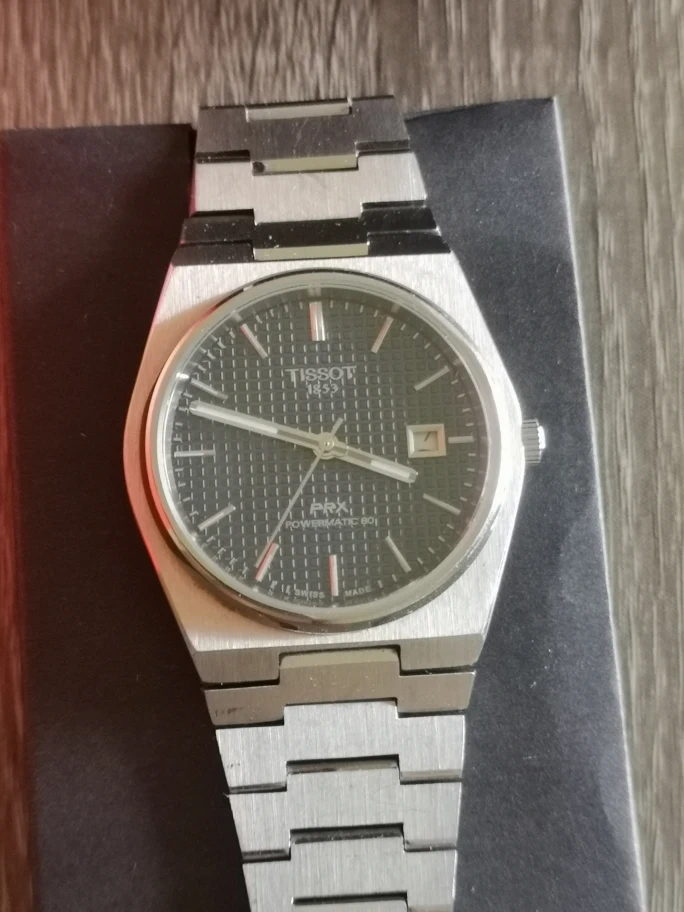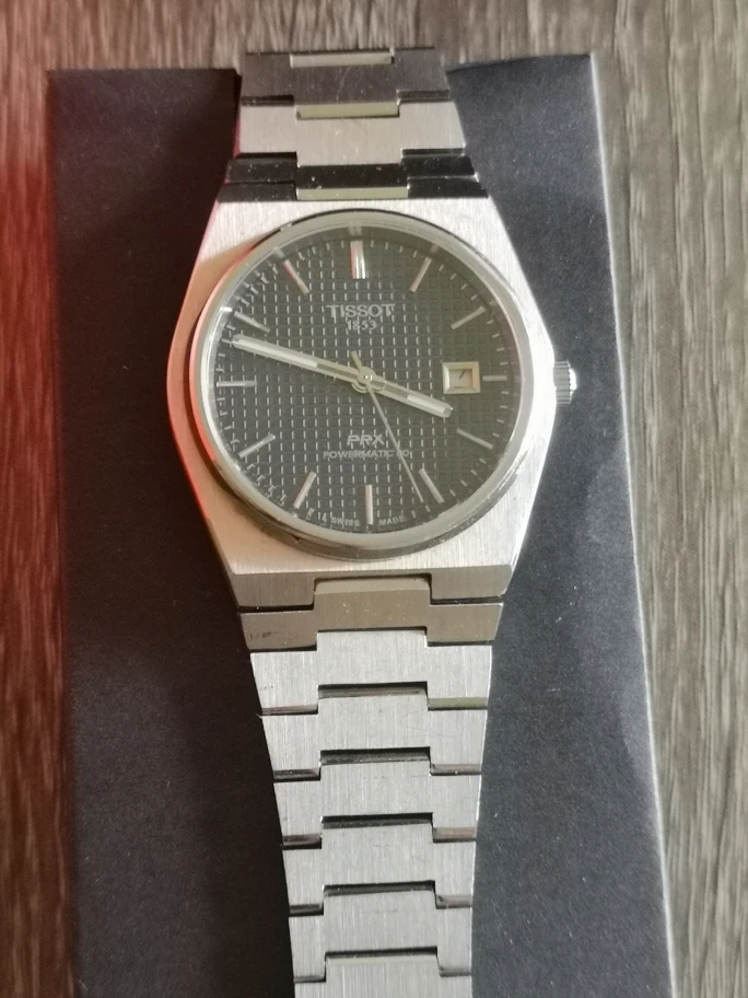 Selling a Tissot PRX Powermatic 80 watch. It's in great condition and comes with its original box. This stylish timepiece features a stainless steel bracelet and a sleek design that's perfect for any occasion. Feel free to reach out if you have any questions! Blue dial 40mm. extra links included.