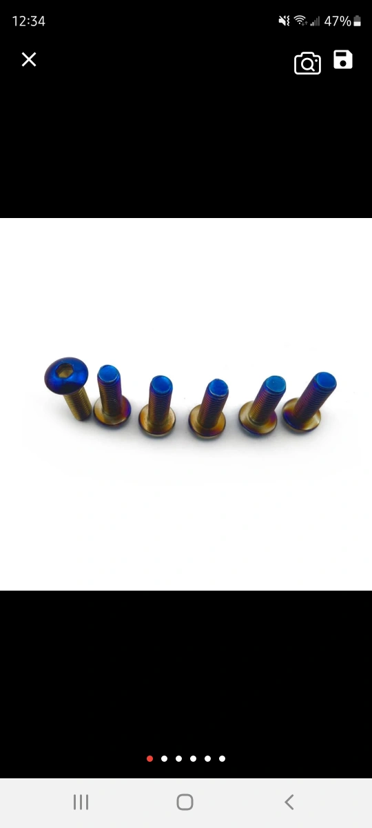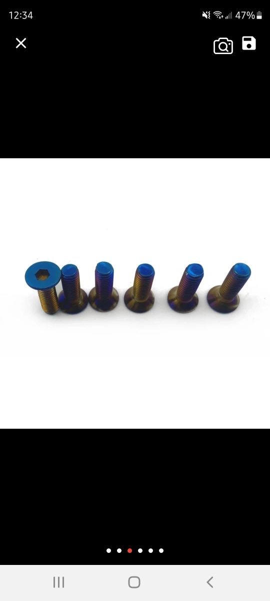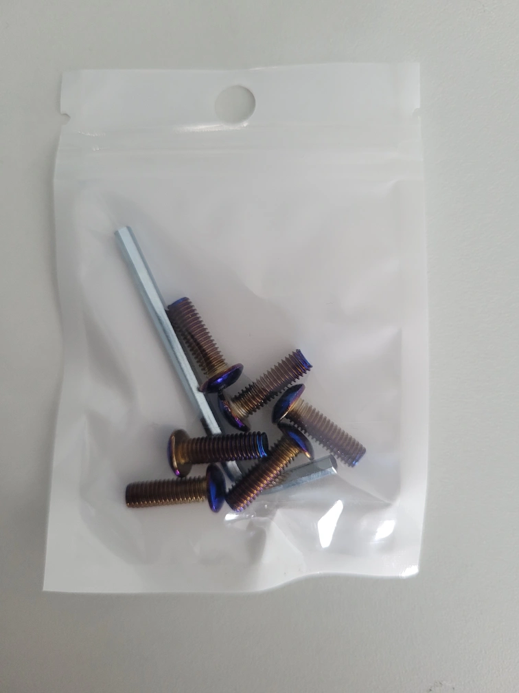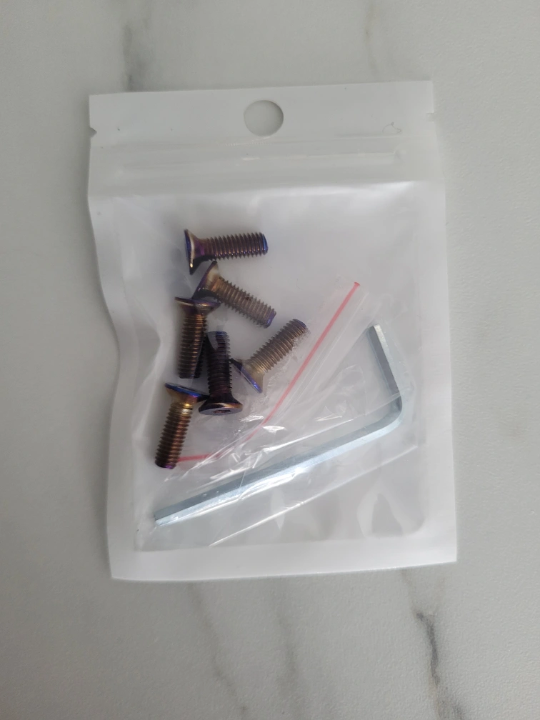 titanium burnt hardware . both round and flat head types, 6 peices per bag plus allen key , I use for steering wheels and hub adapters