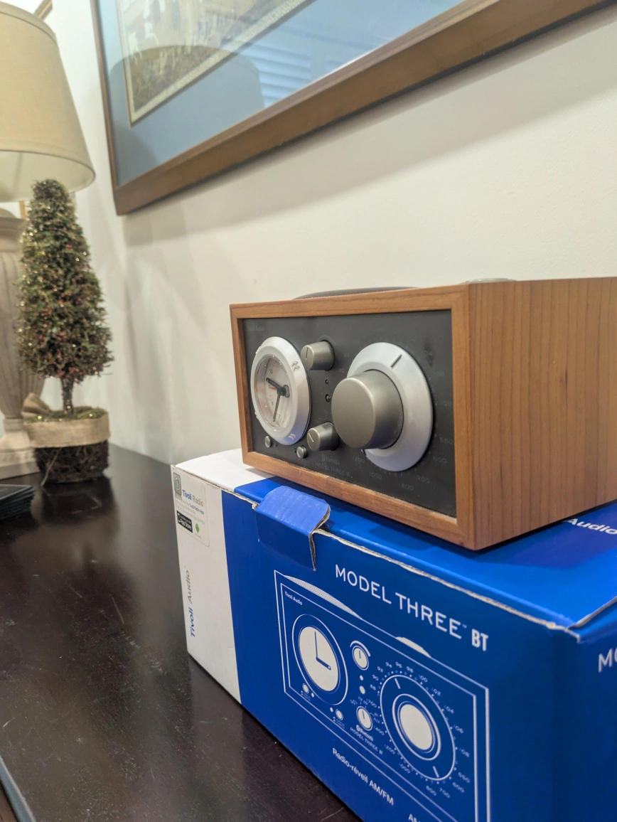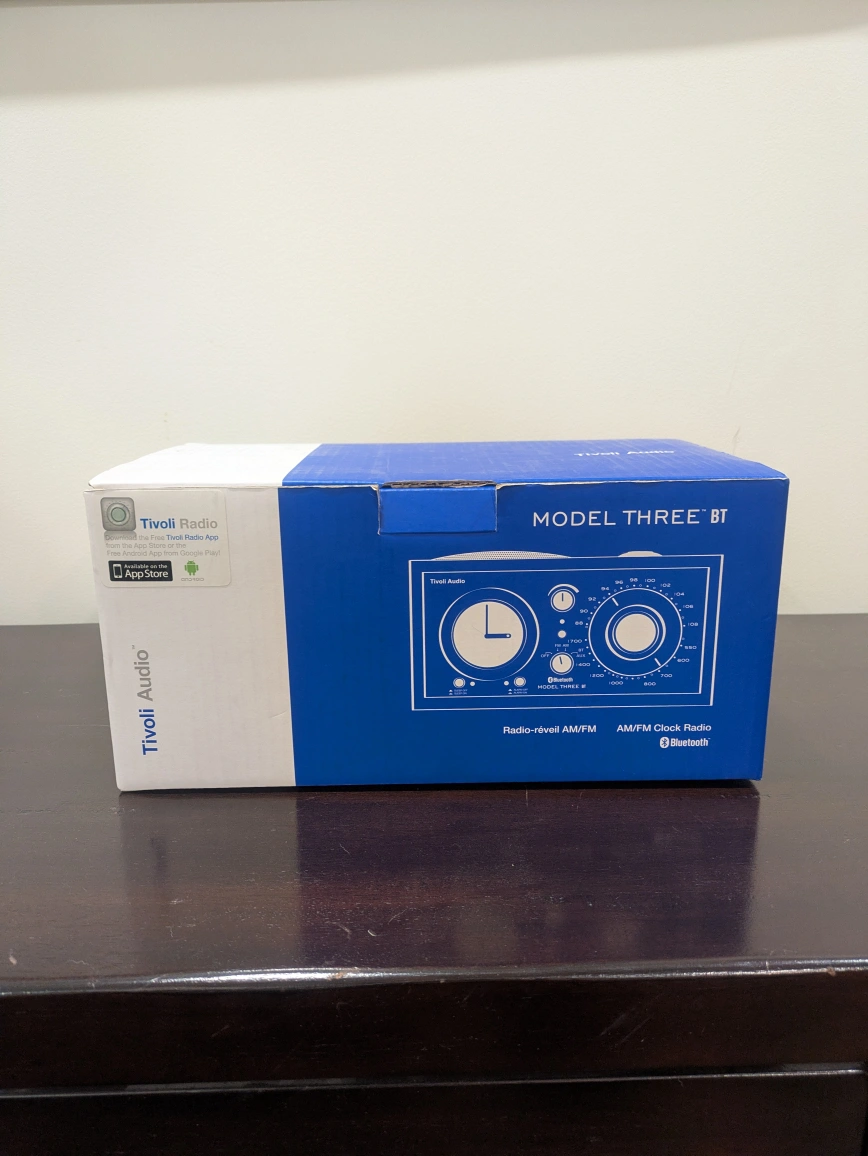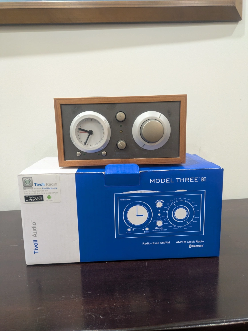 Selling a Tivoli Audio Model Three BT clock radio. It's in great condition and comes with the original box. This radio features AM/FM and Bluetooth connectivity. It has a classic look with a wood finish that would look great in any room. $200 or best offer. Always open to negotiation, price is flexible.