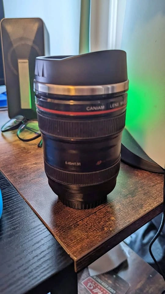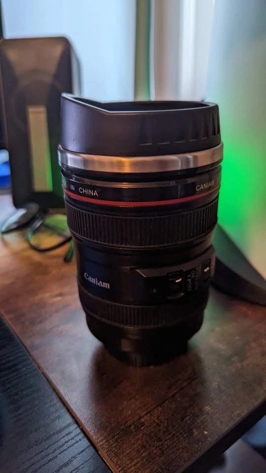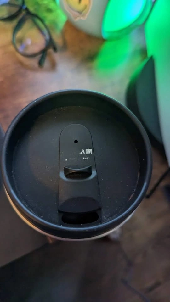 A travel mug to pour in coffee and teas. Good condition, reusable and washable.